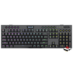 Teclado Gamer Mecânico Redragon K618RGB-PRO Horus Wireless / RGB / RED / Inglês - Preto