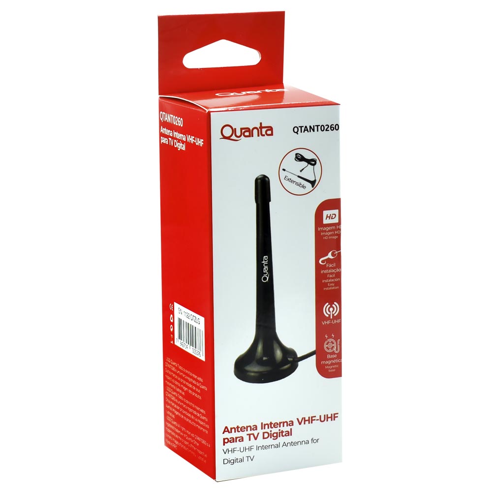Antena para TV Digital Quanta QTANT0260 Interno / VHF / UHF - Preto | QUANTA | Visãovip Informática