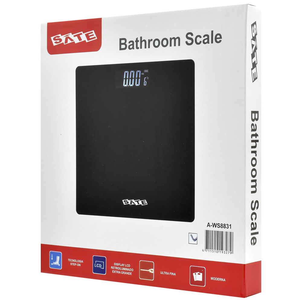 A eficiente balança digital Satellite A-WS8831 combina estilo moderno e precisão num design ultrafino. Com ligação automática ao levantar, oferece uma experiência prática e imediata, enquanto o seu gigantesco ecrã LCD retroiluminado intuitivo permite leituras precisas quando precisa delas, suportando até 180 kg, sendo perfeitas para medições quotidianas. A sua estética elegante e discreta em preto torna-o um acessório tanto funcional como atrativo adequado para qualquer lugar da casa.