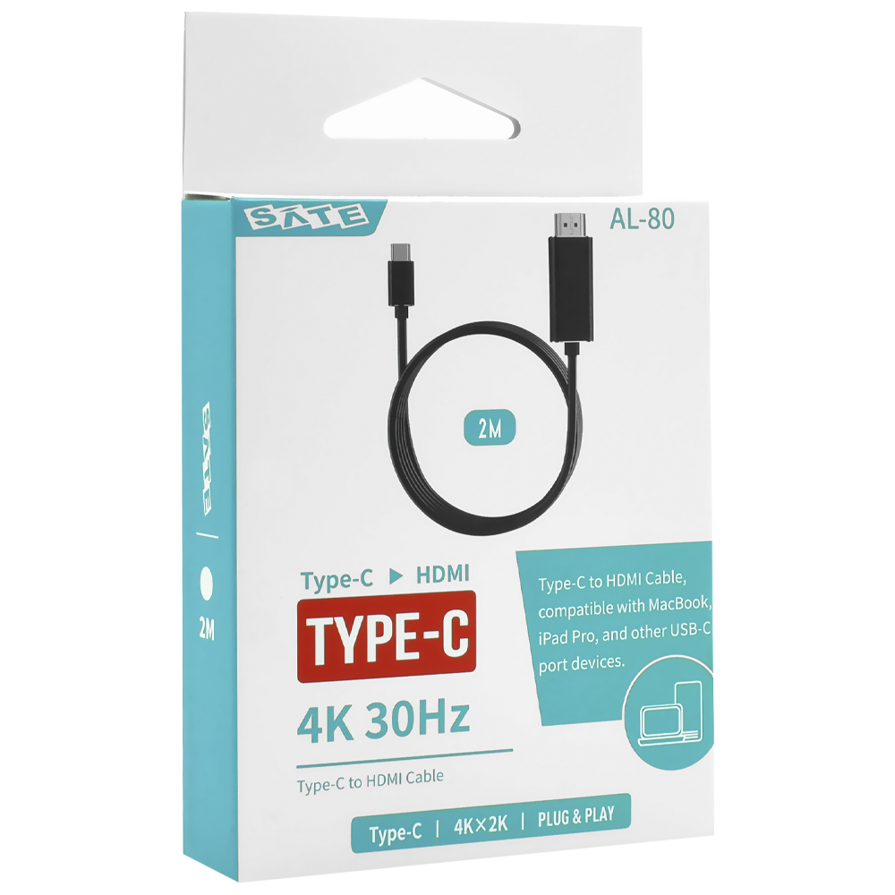 Cabo Adaptador Satellite AL-80 USB-C Macho para HDMI Macho 4K / 30Hz - 2M | SATELLITE | Visão Vip Informática