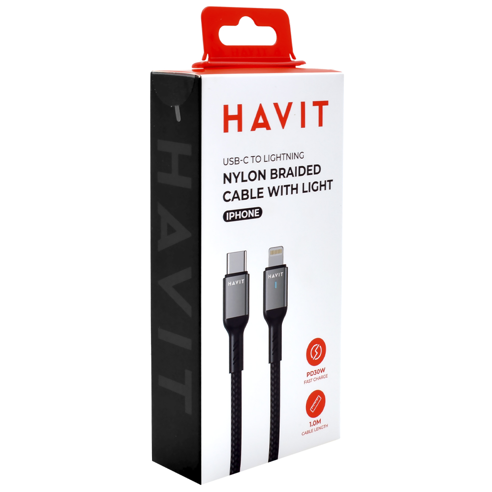 Cabo Havit USB-C Macho a Lightning / 1M - Preto / Cinza (CB6316) | HAVIT | Visão Vip Informática