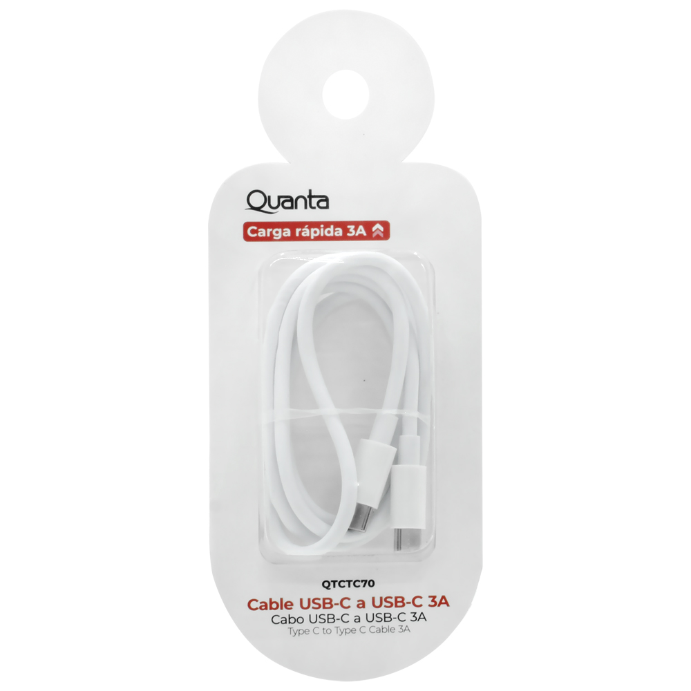 Cabo Quanta QTCTC70 USB-C A USB USB-C Macho 1M - Branco | QUANTA | Visão Vip Informática