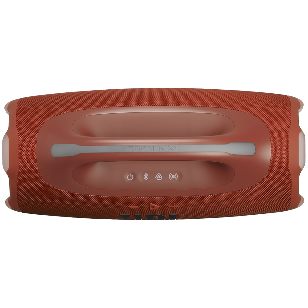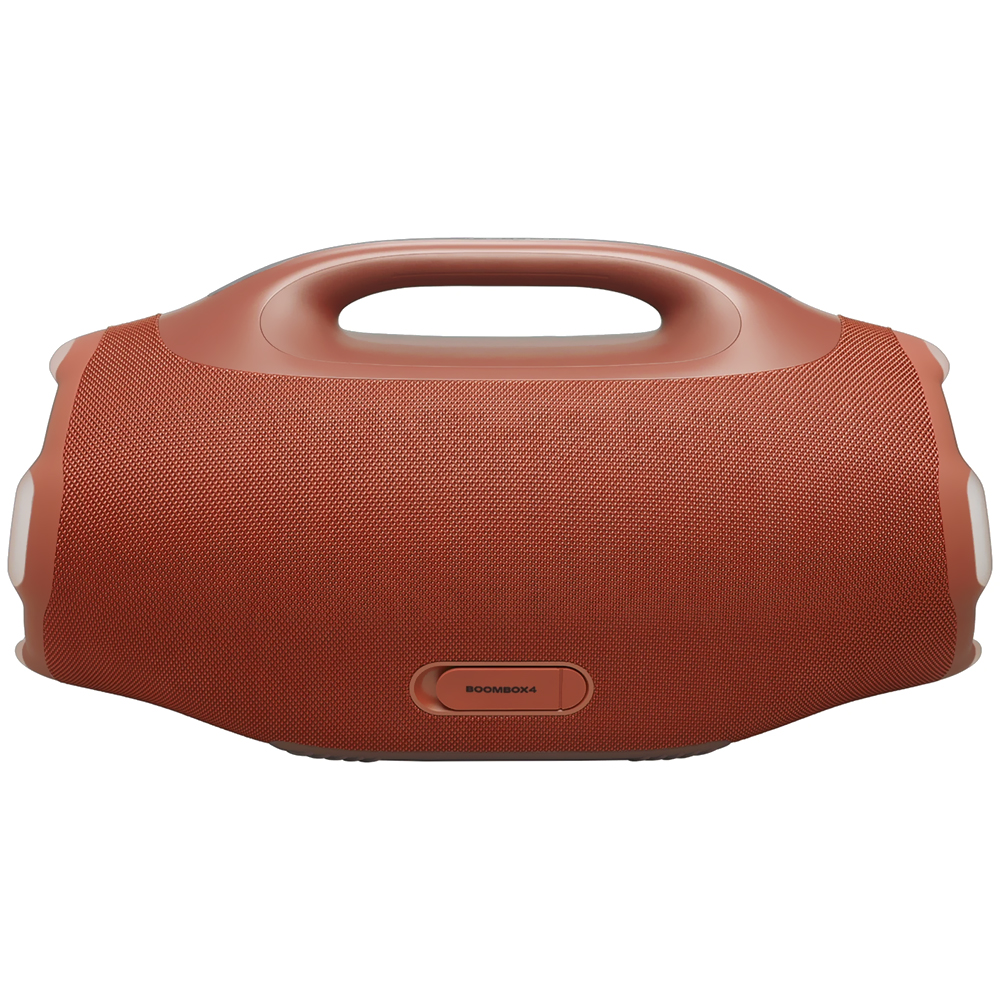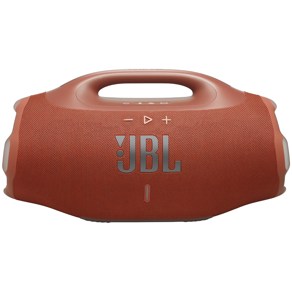 O JBL Boombox 4 é um alto-falante portátil potente para festas e exteriores. Oferece 210W de potência com som profundo graças aos seus dois woofers, dois tweeters e três radiadores passivos. A bateria atinge até 28 horas de reprodução e carrega em apenas 3 horas. Com dois modos Bass Boost, AI Sound Boost, Auracast para conectar vários alto-falantes e USB-C para áudio sem perdas ou carregar dispositivos. Design leve, alça de transporte e materiais reciclados. Som potente, portabilidade total.