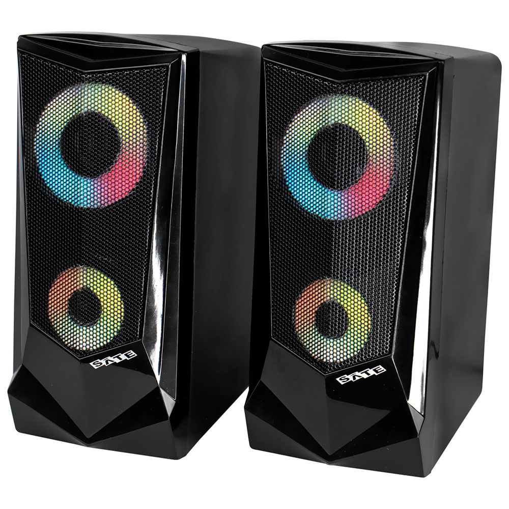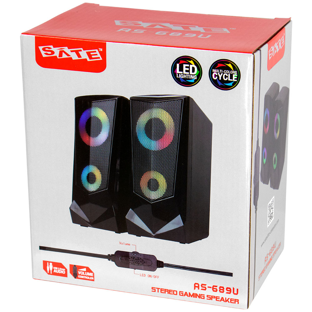 Projetado para proporcionar uma experiência de áudio envolvente, o alto-falante Satellite AS-689U apresenta uma ampla resposta de frequência de áudio de 20 Hz a 40 KHz. Por meio de sua iluminação RGB, ele proporciona um ambiente visual atraente. A conexão via interfaces USB e o conector de áudio de 3.5 mm garantem fácil conectividade. Ele se destaca por seu elegante design preto, oferecendo uma combinação de estilo e funcionalidade para atender às necessidades de qualquer cliente.