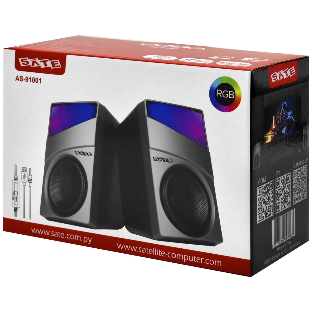 Caixa de Som Satellite AS-91001 Gaming RGB / USB / 3.5mm - Preto / Cinza | SATELLITE | Visãovip Informática