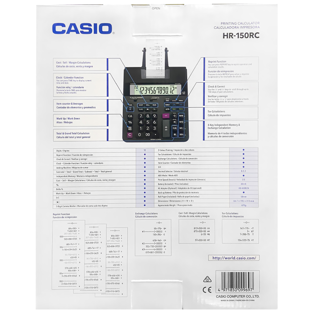 CALCULADORA CASIO HR-150RC BOBINA 12 DIGITOS PRETO | CASIO | Visãovip Informática
