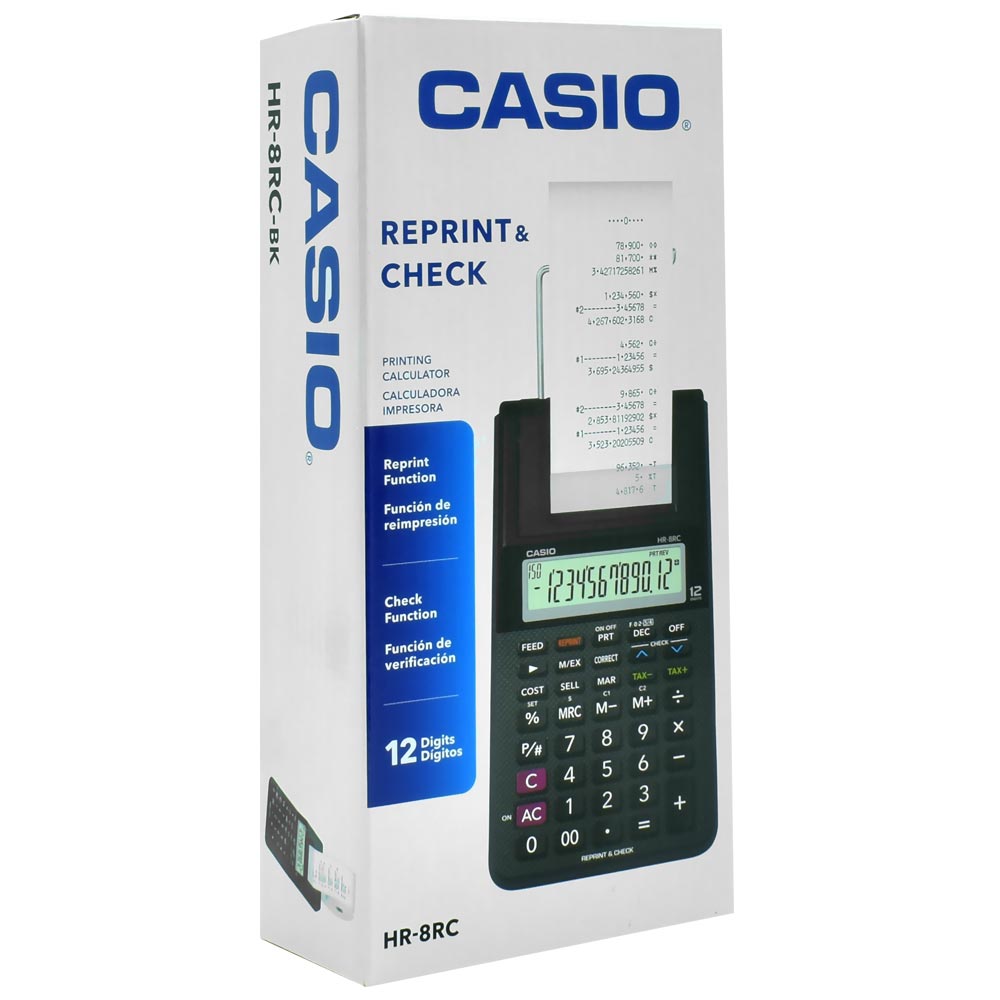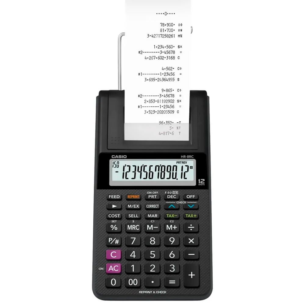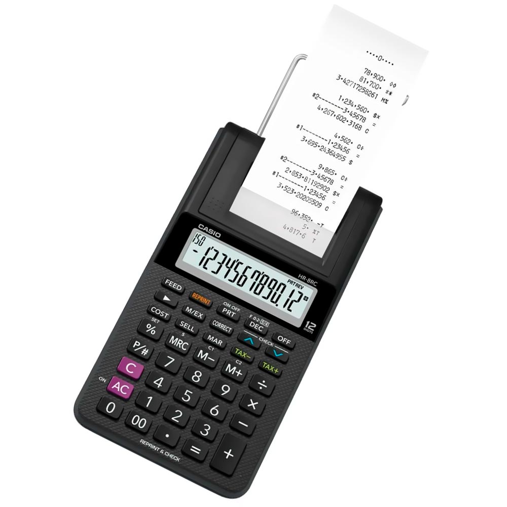Calculadora com Bobina Casio HR-8RC 12 Dígitos - Preto | CASIO | Visãovip Informática