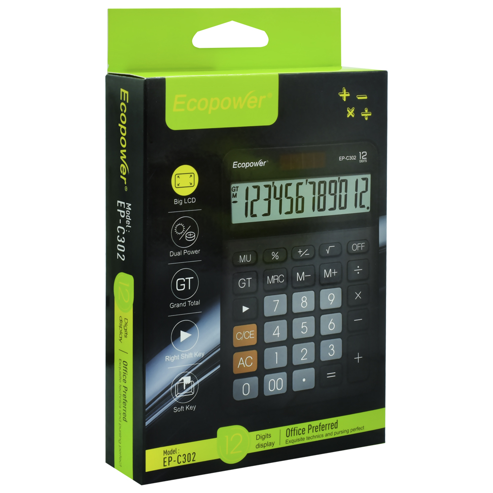Conheça um dispositivo apelativo mas útil com a Ecopower EP-C302, uma calculadora concebida para facilitar as tarefas essenciais em casa, no escritório ou espaços educativos. A sua cor preto elegante confere estilo ao ambiente de trabalho, enquanto a grande tela LCD garante clareza na leitura dos números. Além disso, apresenta construção robusta, portabilidade e durabilidade, ideal para os cálculos cotidianos, combinando funcionalidade, ergonomia e praticidade nas suas operações diárias.