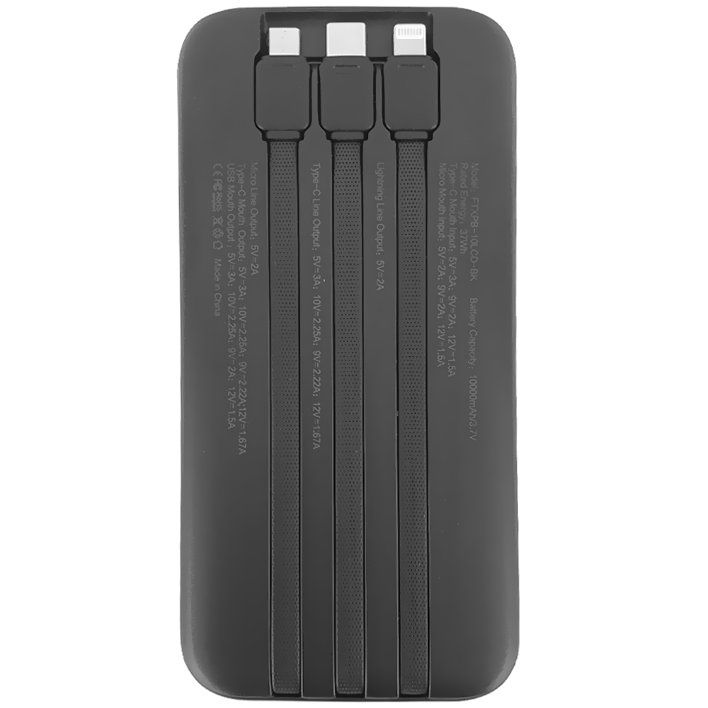 Carregador Portátil FTX PB-10LCD-BK 10000MAH USB / Micro USB / USB-C / 22.5W - Preto