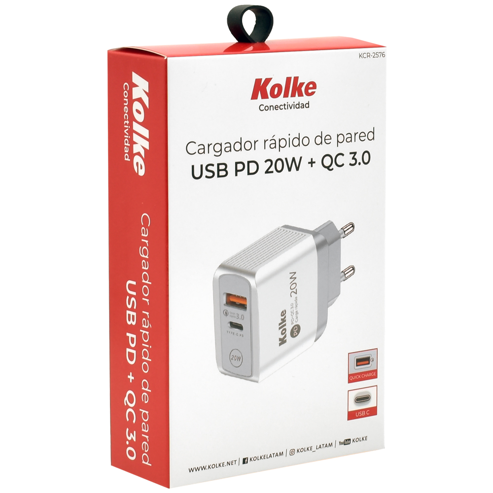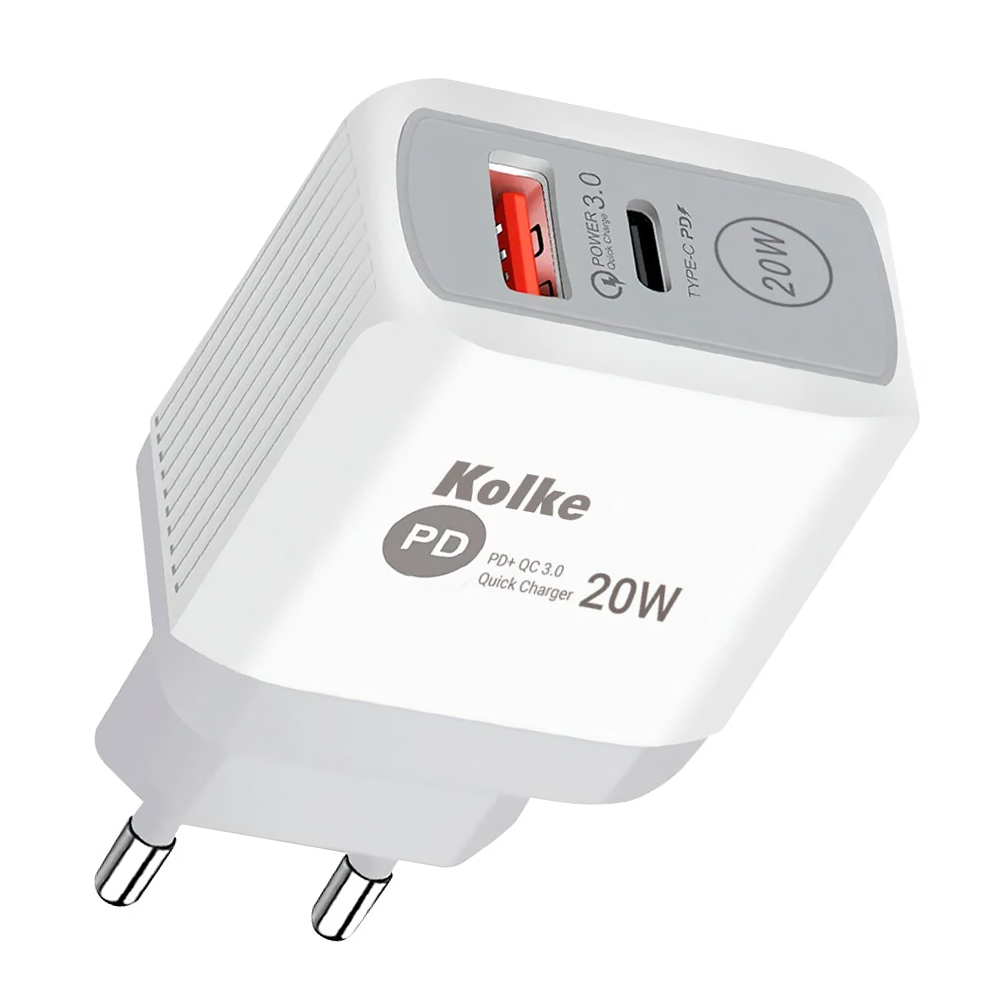 Carregador Tomada Kolke KCR-2576 USB 3.0 / USB-C / 20W - Preto | KOLKE | Visãovip Informática