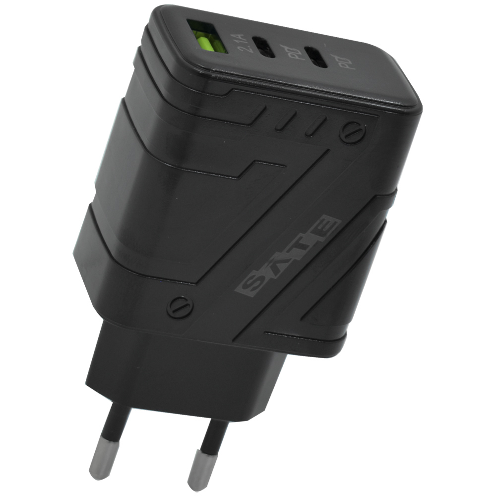 Carregador Tomada Satellite A-CC1201 USB / 2 USB-C / 12W - Preto | SATELLITE | Visãovip Informática