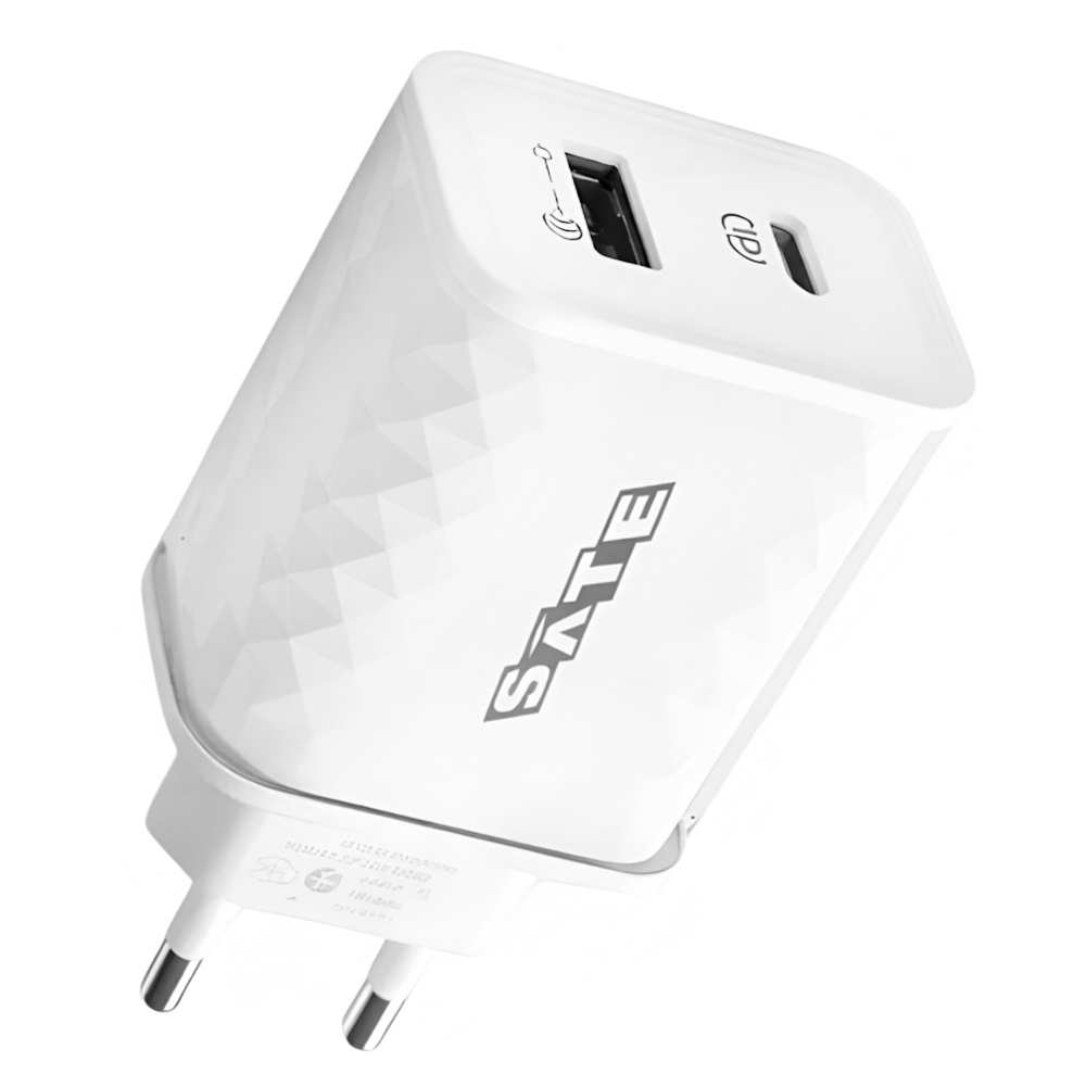 Carregador Tomada Satellite A-CC2001 USB / USB-C / 20W - Branco