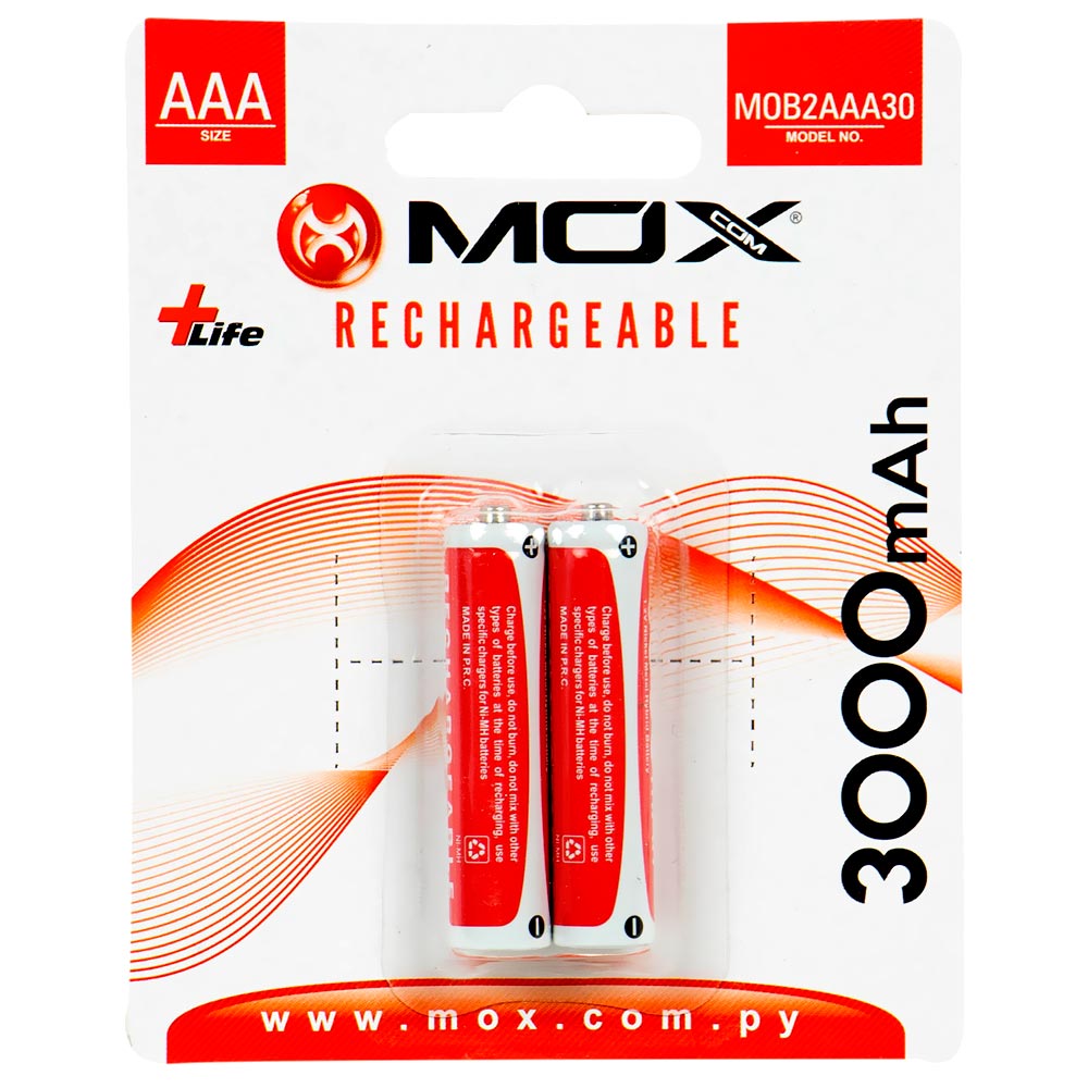 Pilhas Recarregável Mox AAA com 2 Pilhas / 3000MAH - MOB2AAA30 | MOX | Visão Vip Informática
