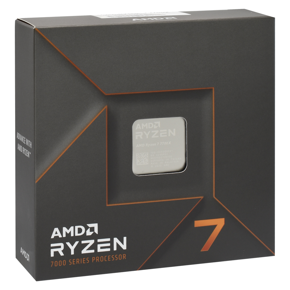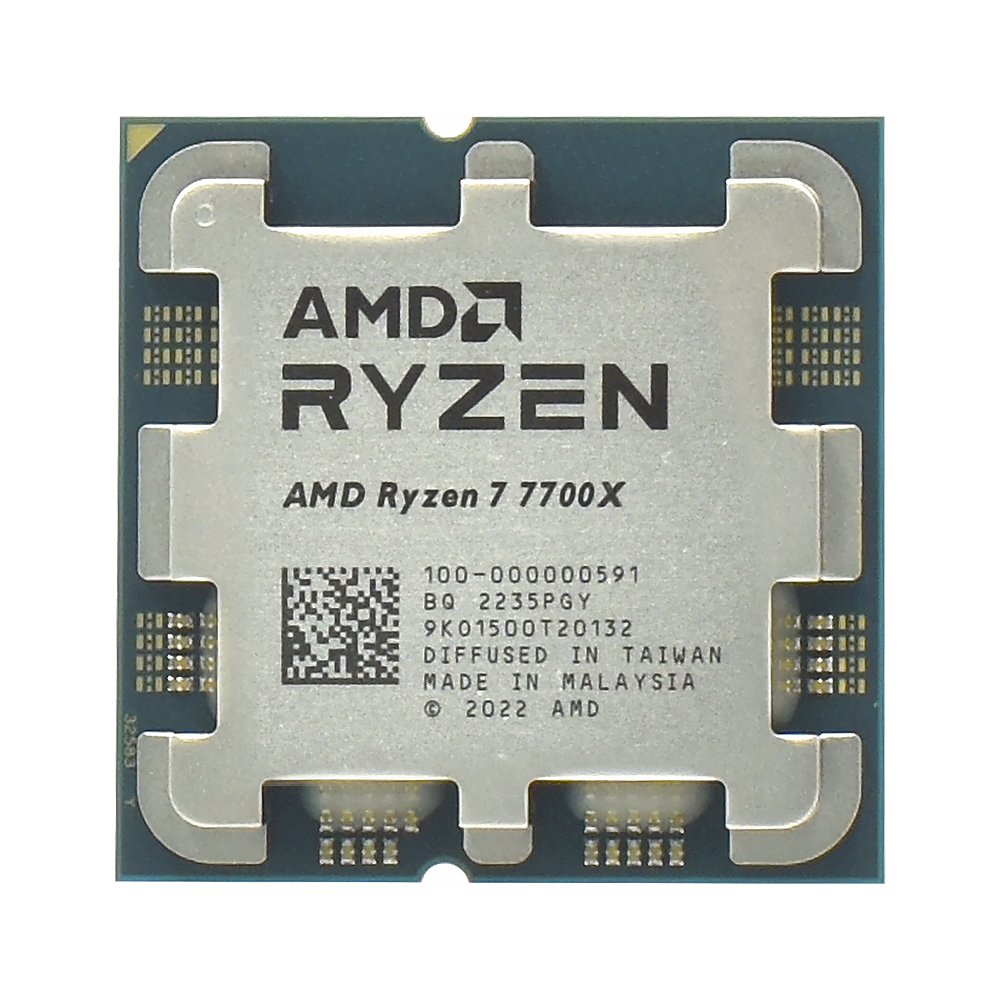 O AMD Ryzen 7 7700X, um poderoso processador com 8 núcleos (e 16 threads), capaz de atingir frequências de até 5.4 GHz.