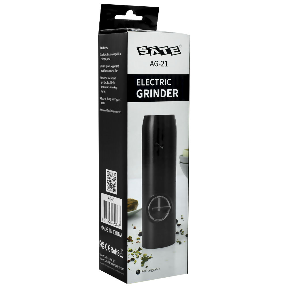 O moedor de sal elétrico Satellite AG-21 na cor preta é uma ferramenta moderna e prática para moer sal de forma rápida e eficiente. Seu funcionamento elétrico torna o processo ainda mais simples e confortável. Este moedor não é apenas funcional, mas também tem um design elegante, tornando-se uma excelente adição à sua cozinha. Ideal para quem busca conforto e estilo ao cozinhar. Seu tamanho compacto o torna perfeito para qualquer espaço na cozinha.