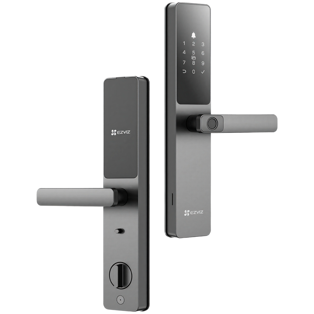 A Ezviz CS-DL05 é uma fechadura inteligente que oferece múltiplas formas de desbloqueio: impressão digital, código de acesso, cartão de proximidade, chave mecânica e controle por Bluetooth pelo app. Inclui código antiespião, bloqueio automático, alarme antissabotagem e campainha eletrônica. É resistente à água e poeira com certificação IP65. Com 8 pilhas AA que duram até 1 ano, aviso de bateria fraca e porta USB-C para carga de emergência. Segurança inteligente e prática para sua casa.