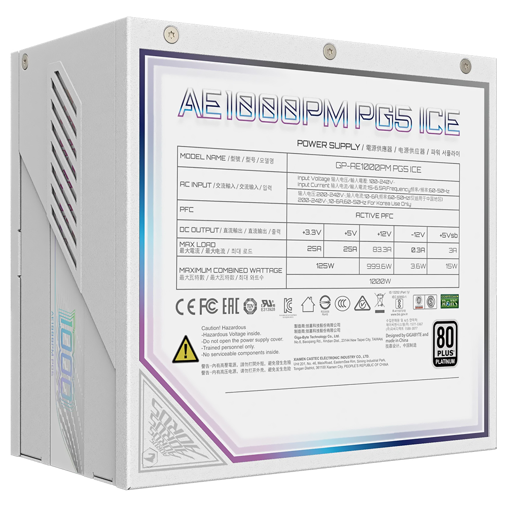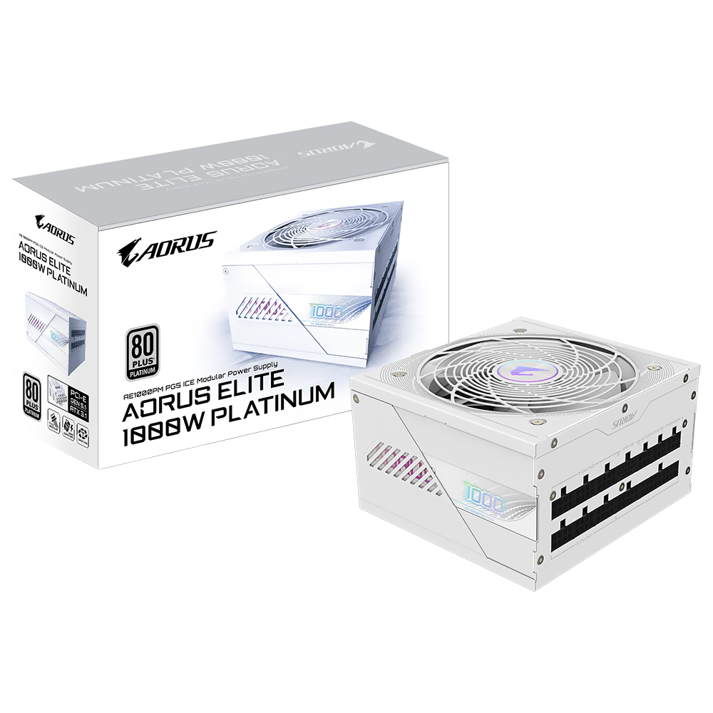 Fonte de Alimentação Gigabyte AORUS Elite GP-AE1000PM PG5 Ice 1000W ATX 3.1 / Modular / 80 Plus Platinum / Bivolt | GIGABYTE | Visãovip Informática