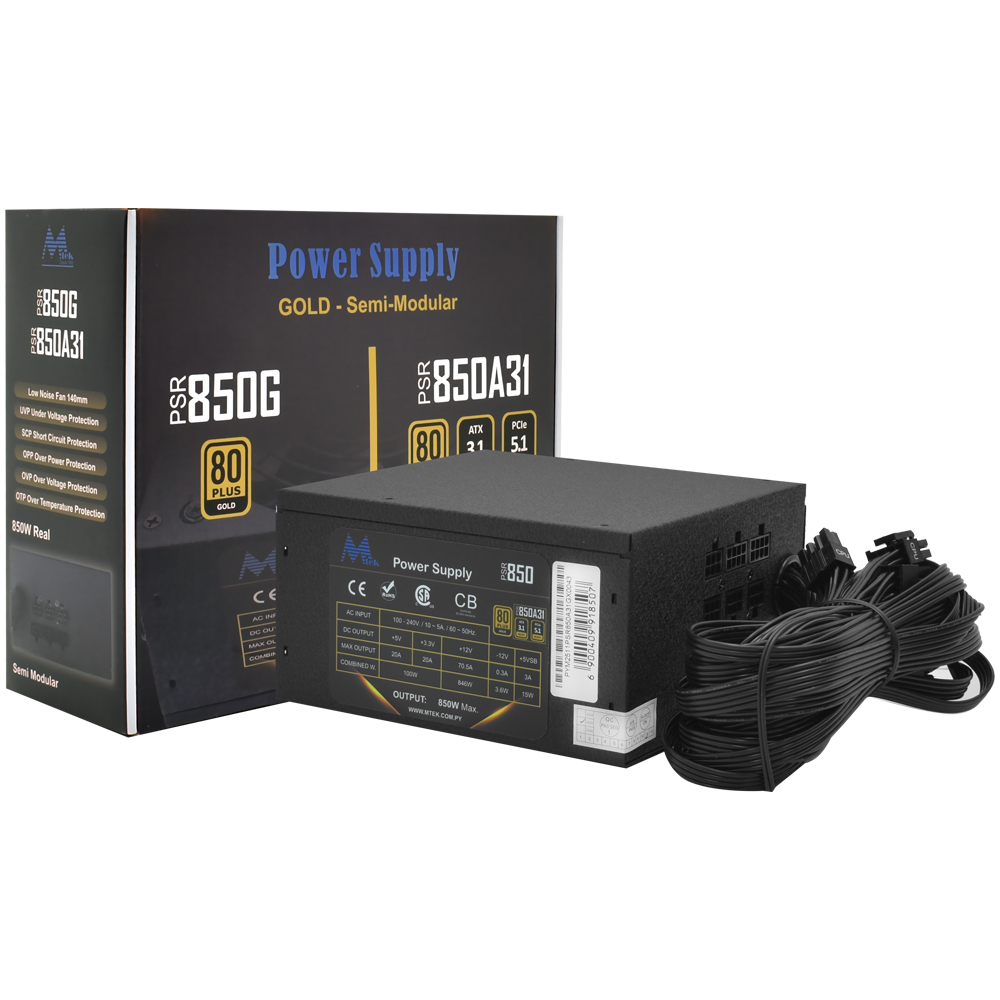 A Mtek PSR-850G oferece eficiência e confiança com 850W e certificação 80 Plus Gold, ideal para equipamentos de jogos e trabalho pesado. Seu design semi modular facilita a montagem e melhora o fluxo de ar, com cabos organizados. A ventoinha silenciosa de 140 mm mantém tudo fresco sem fazer barulho, mesmo em sessões longas. Inclui múltiplas proteções para maior tranquilidade. Compatível com tensão universal e conectores para placa-mãe. Energia estável, desempenho garantido para seu PC.