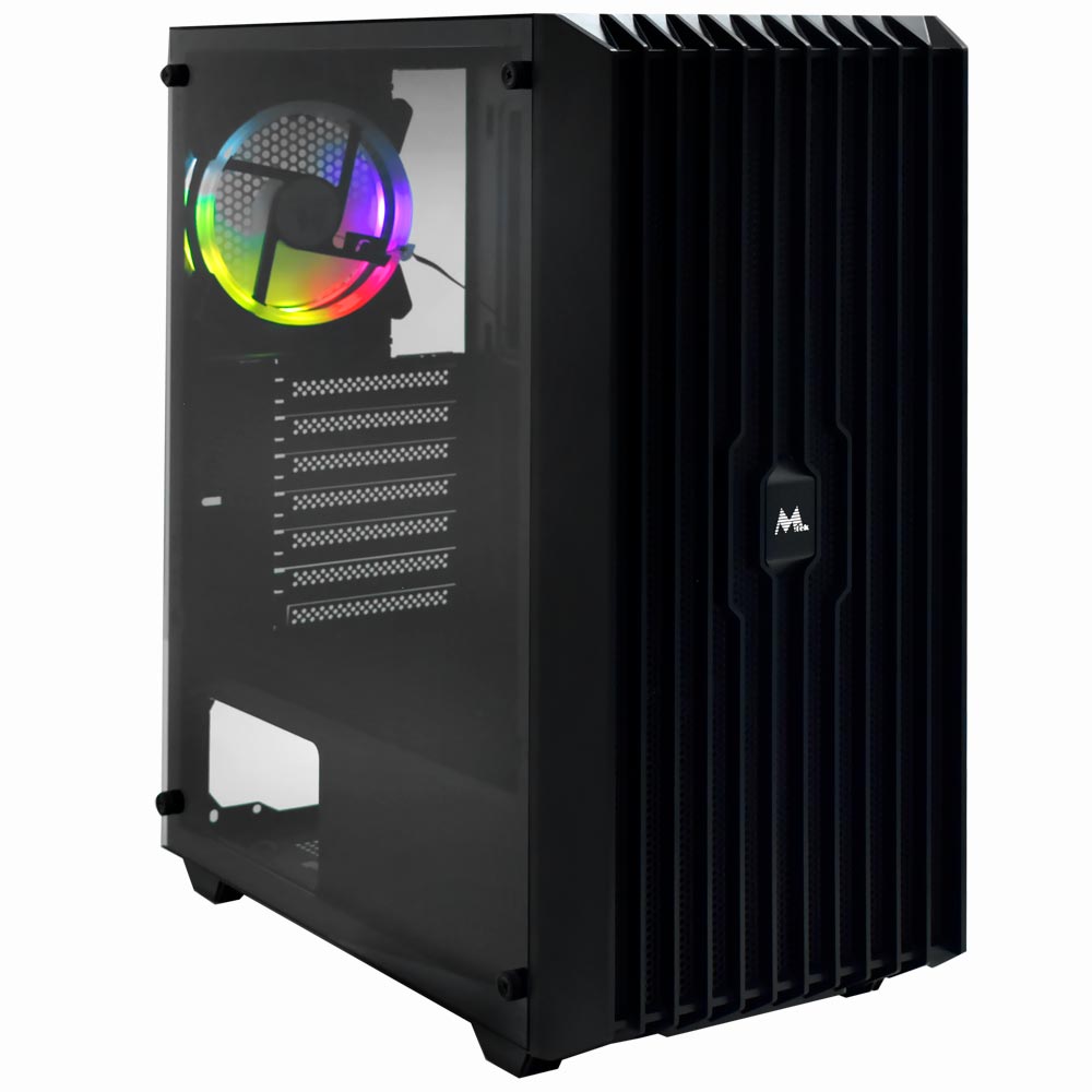 O gabinete Mtek MK2606 apresenta um design moderno e simples. Com seu formato Mid Tower, oferece amplo espaço para coolers e componentes eficientes, o que o torna a plataforma ideal para jogos. Inclui um cooler RGB de 120 mm pré-instalado, baias versáteis para disco rígido e SSD e 7 slots de expansão. Potencializando sua experiência em jogos com estilo e funcionalidade, o Mtek MK2606 é a escolha perfeita para os jogadores entusiastas.