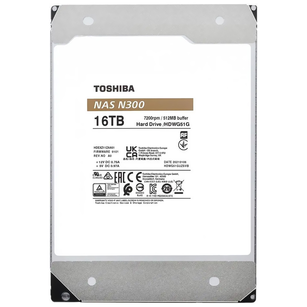 HD Toshiba 16TB N300 Nas 3.5" SATA 3 7200RPM - HDWG51GXZSTA (GARANTIA BR)