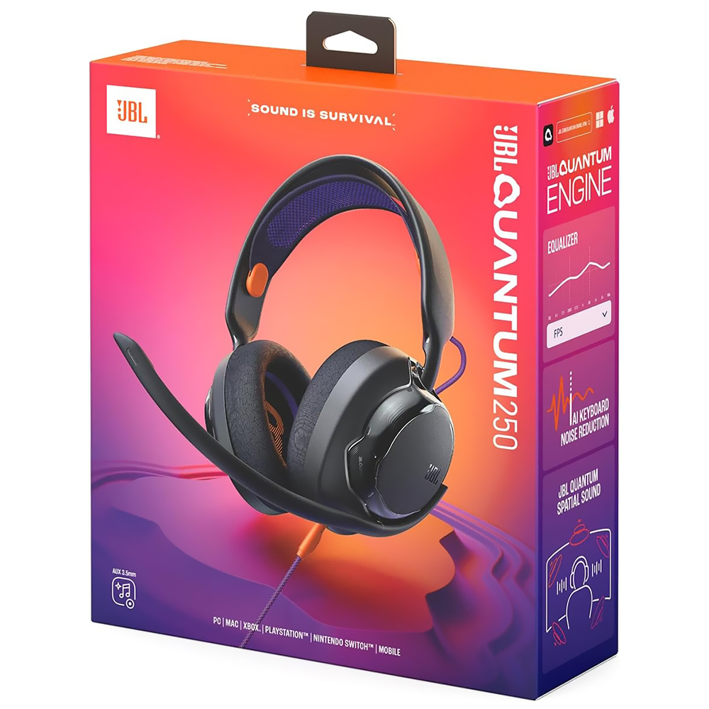Potencialize seu jogo com o JBL Quantum 250 em preto, projetado para quem busca precisão absoluta no PC, Xbox ou Switch. Seus drivers de carbono de 50 mm geram um cenário sonoro nítido, enquanto a tecnologia Quantum Spatial Sound permite localizar cada detalhe tático em tempo real. Este modelo com fio garante uma conexão analógica estável e sem latência, complementada por um microfone cardioide removível que assegura uma comunicação impecável com sua equipe em todos os momentos.