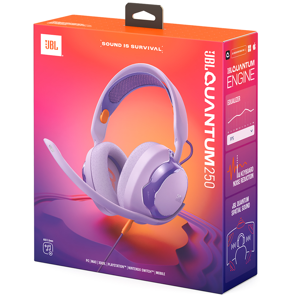 O JBL Quantum 250 na cor roxa não apenas se destaca pelo estilo ousado, mas pela potência bruta de seus drivers de carbono de 50 mm. Este modelo com fio elimina qualquer atraso no som, permitindo que a tecnologia Quantum Spatial Sound coloque você no centro da ação no PC, consoles ou celulares. Com um microfone cardioide que filtra o ruído ambiente e um design ergonômico para longas sessões, é a combinação ideal entre personalidade visual e fidelidade acústica de alto nível.