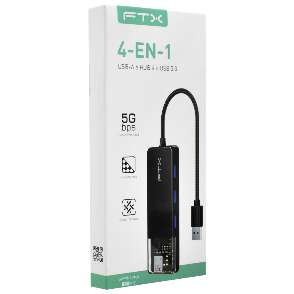 Hub USB 3.0 FTX CT-HUBT1-PB 4 Portas / 4 USB 3.0 / USB-C Fêmea - Cinza | FTX | Visão Vip Informática