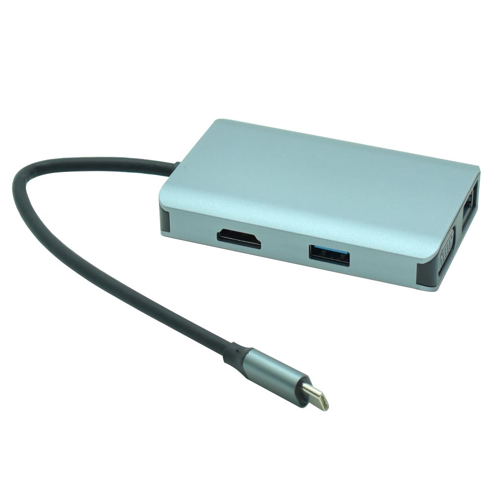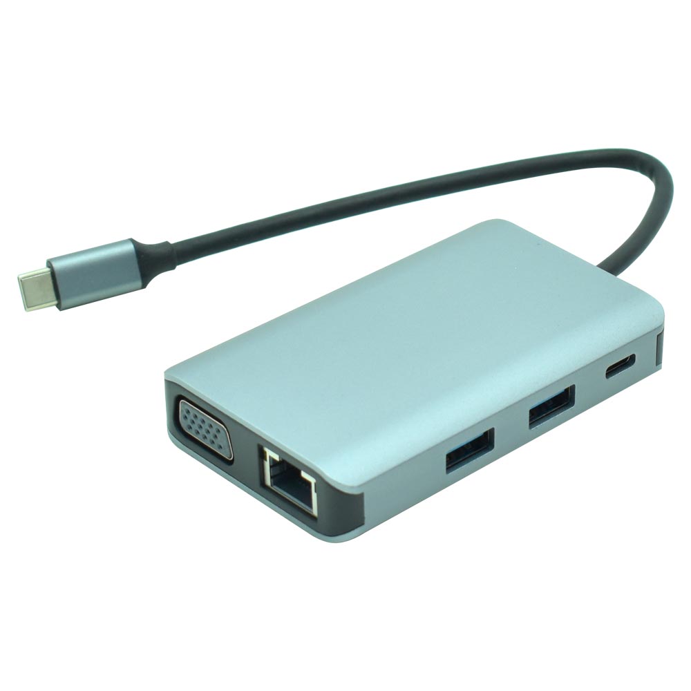 Hub USB-C 3.1 Satellite A-HUBC57 7 Portas / HDMI / 3 USB 3.0 / RJ45 / VGA / USB-C Fêmea - Cinza | SATELLITE | Visão Vip Informática