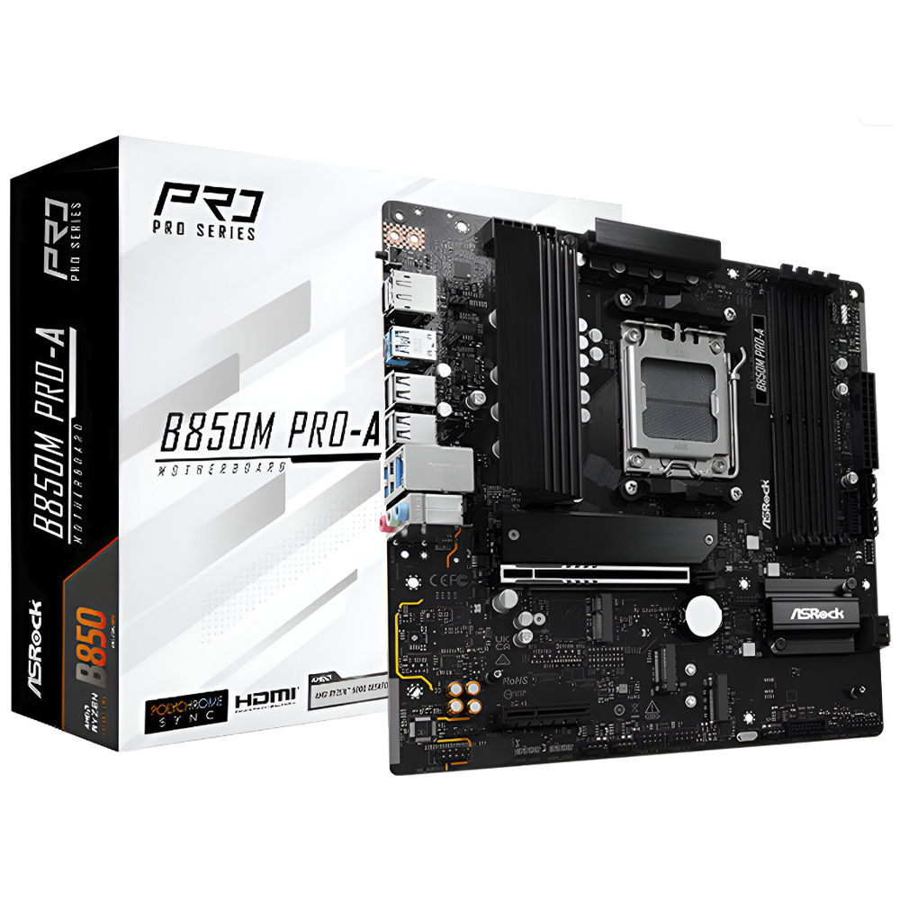 O monstruoso ASRock B850M PRO-A oferece uma base sólida e moderna para configurações rigorosas, apresentando suporte para os mais recentes processadores AMD Ryzen, ao mesmo tempo que da suporte a memórias DDR5 altamente ágil, ranhuras M.2 triplas e conectividade avançada para criar sistemas rápidos e eficientes a qualquer obstáculo. O formato Micro ATX adapta-se perfeitamente a caixas compactas sem sacrificar a potência ou a capacidade de expansão, ideal parautilizadores profissionais.