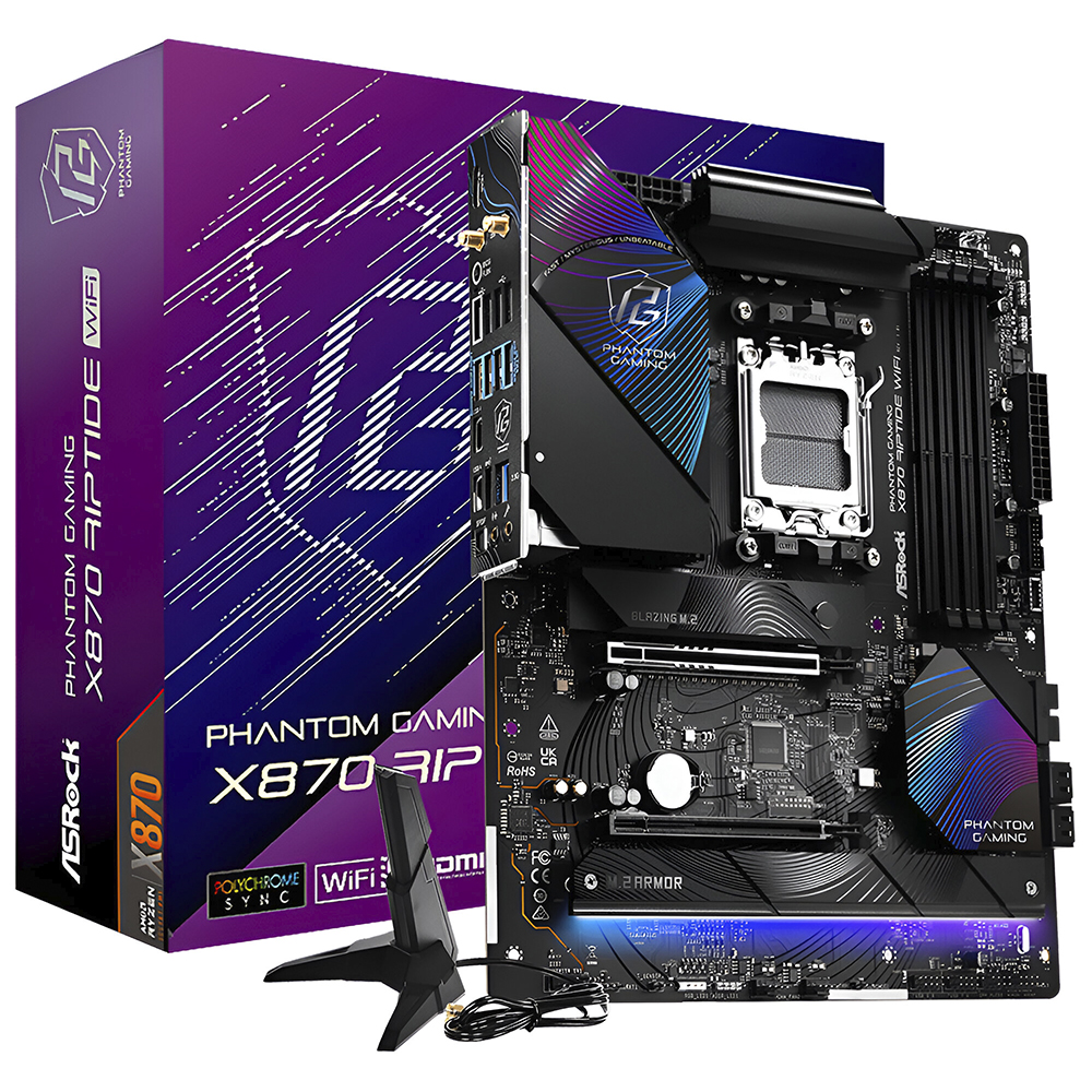 A ASRock X870 Riptide Wi-Fi é uma placa-mãe ATX projetada para quem deseja explorar ao máximo o potencial de seus equipamentos. Sua estética moderna, com dissipadores de grande porte e acabamentos de alta qualidade, reflete a potência que esconde em seu interior, tornando-a o coração perfeito para configurações de última geração para jogos e criação de conteúdo. Equipada pelo socket AM5 e chipset AMD X870, oferece compatibilidade com processadores AMD Ryzen Series 9000, 8000 e 7000.