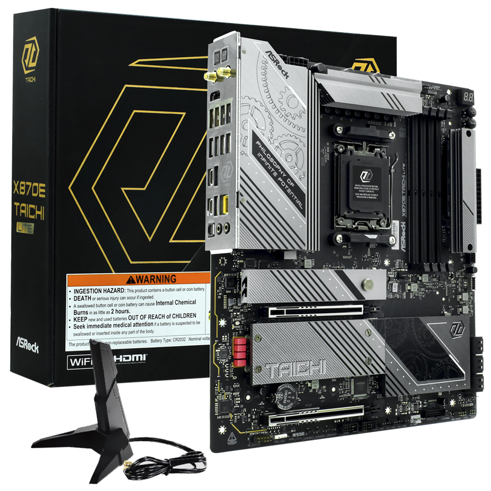 Descubra a placa-mãe ASRock X870E TAICHI Lite, uma obra-prima da engenharia projetada para levar sua experiência de computação a novos patamares. Essa motherboard, compatível com os poderosos processadores AMD Ryzen série 9000 e a memória DDR5, ela redefine o desempenho extremo. Seu formato E-ATX oferece uma base sólida para qualquer configuração de alto rendimento, enquanto seu design versátil se adapta às necessidades de entusiastas de hardware e profissionais.