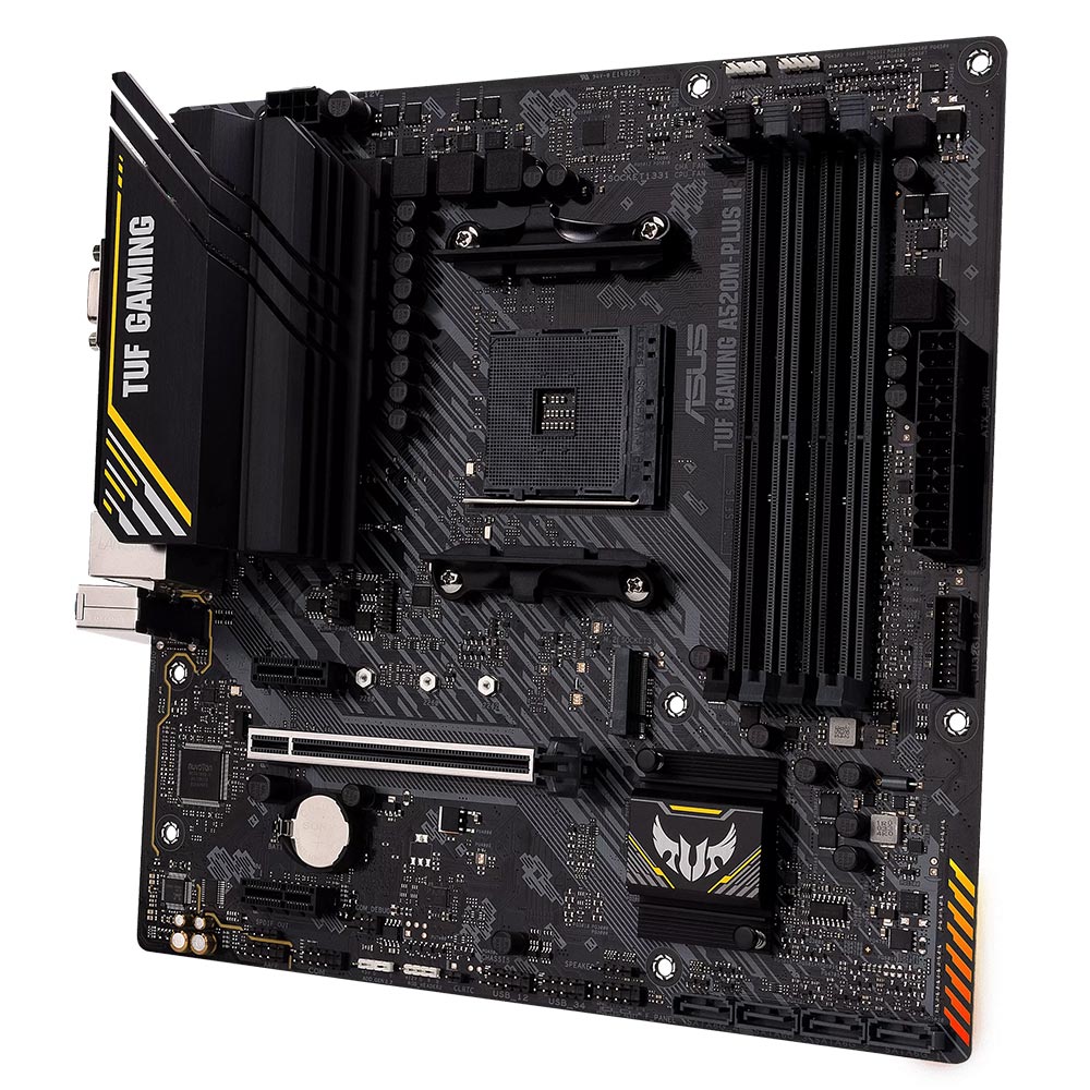 Descubra o poder máximo dos jogos através da placa-mãe ASUS TUF Gaming A520M-PLUS II. Projetada para usuários exigentes e entusiastas de jogos, ela é compatível com os poderosos processadores AMD Ryzen, oferecendo uma experiência de jogo inigualável. Seu formato Micro ATX não apenas economiza espaço, mas também é feito para durar. Com componentes de nível militar e um design robusto, essa motherboard foi criada para suportar as condições de jogo mais exigentes.