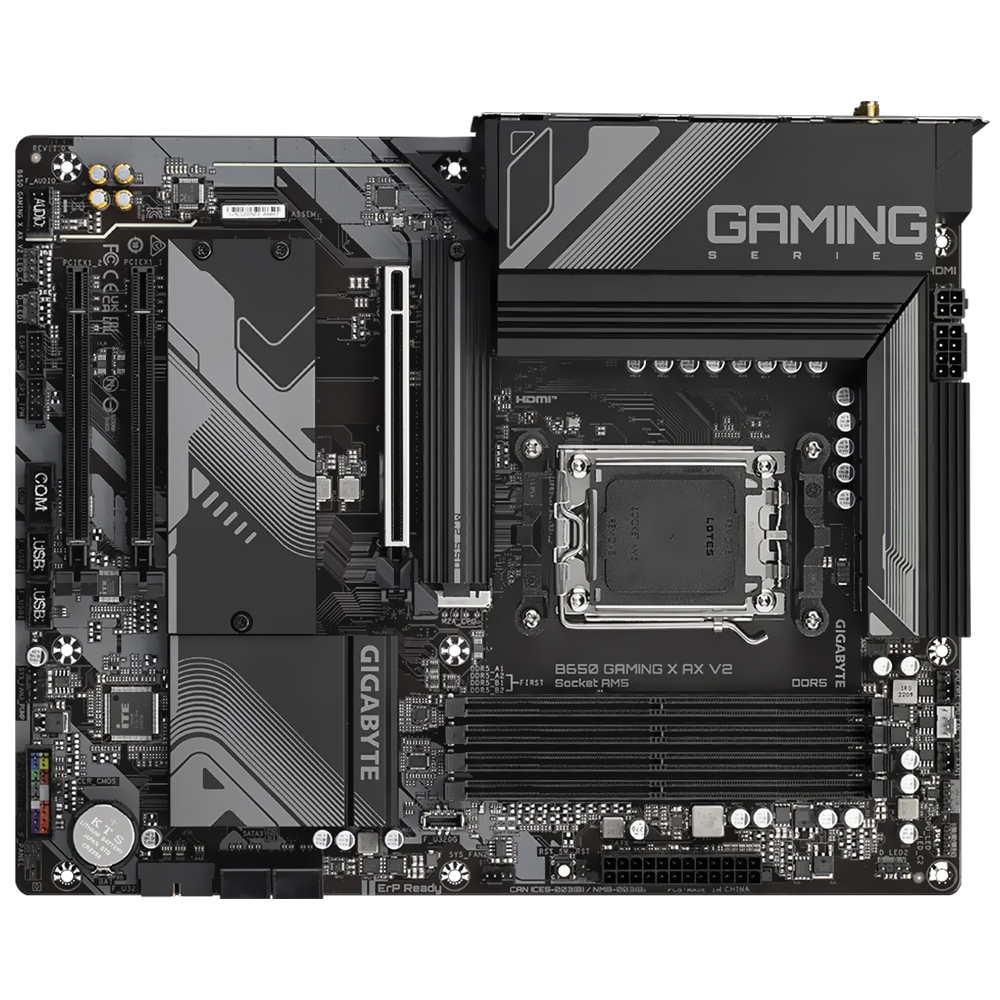 A Gigabyte B650 Gaming X AX V2 é uma placa-mãe ATX criada para quem deseja aproveitar ao máximo o potencial dos processadores AMD Ryzen Series 9000, 8000 e 7000. Seu design robusto e estilizado, com dissipadores de grande tamanho e acabamentos de alta qualidade, reflete a potência e a estabilidade que oferece, tornando-a o núcleo perfeito para um PC gamer ou de alto desempenho. É a escolha perfeita para quem busca uma base sólida, rápida e preparada para o futuro.