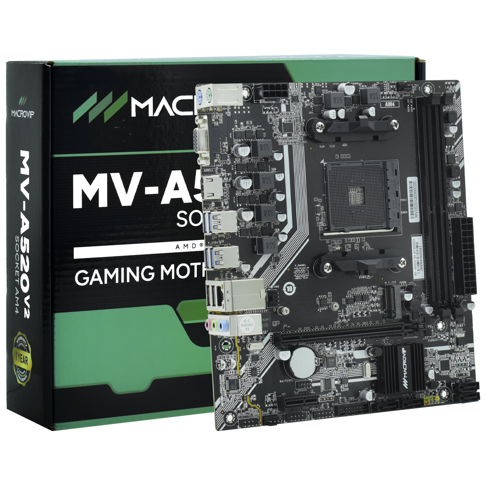Otimize seu equipamento com a placa mãe Macrovip MV-A520V2, uma solução equilibrada para quem busca desempenho estável e compatibilidade garantida. Projetada para processadores AMD Ryzen, suporta até 64 GB de memória DDR4 em dual channel, oferecendo uma experiência ágil para tarefas diárias e produtividade. Seu design prático inclui saídas HDMI e VGA, além de conectividade essencial e expansão PCIe para se adaptar a diferentes configurações.