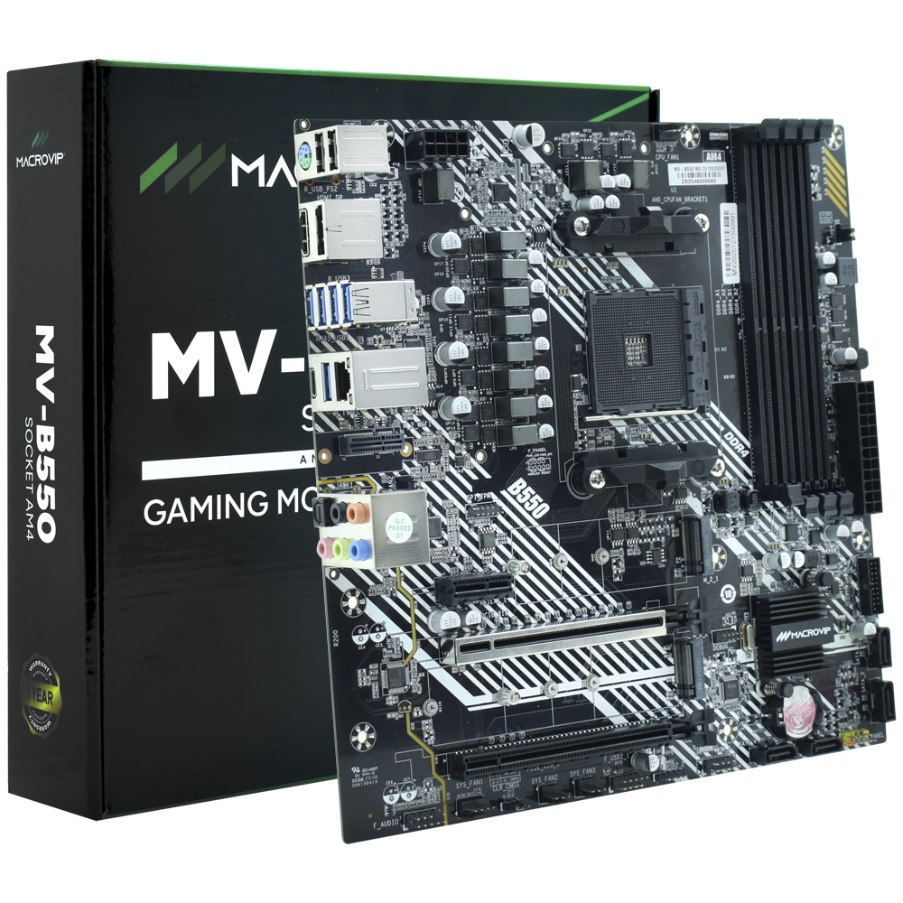 Impulsione a sua configuração ao próximo nível com a placa mãe Macrovip MV-B550, criada para usuários que buscam desempenho máximo e expansão sem limites. Compatível com processadores Ryzen AM4 de várias gerações, suporta até 128 GB de memória DDR4 em dual channel, ideal para multitarefa intensa e cargas exigentes. Sua arquitetura avançada inclui dois M.2 NVMe, múltiplas portas SATA e conectividade completa com USB-C, HDMI e DisplayPort.