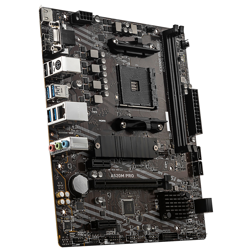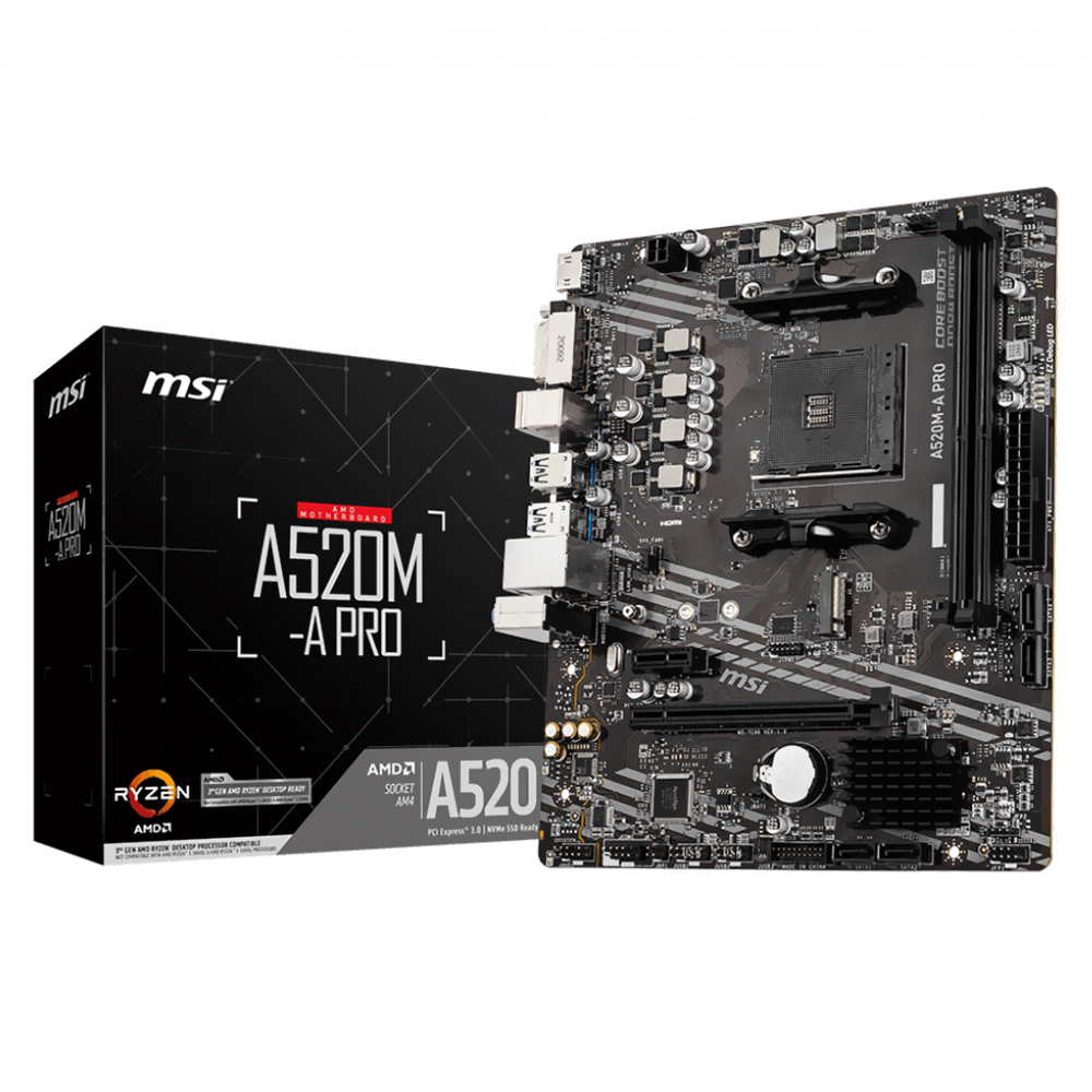 A placa-mãe MSI A520M Pro é a escolha perfeita para quem procura uma motherboard eficiente e de alto desempenho em um formato micro ATX compacto. Compatível aos processadores das séries Ryzen 5000, 4000 e 3000 e com suporte para memória DDR4 de até 4600 MHz, ela foi projetada para lidar com todas as suas tarefas diárias de forma rápida e fácil. É ideal para quem deseja criar um sistema descomplicado, mas com todos os recursos necessários para um rendimento ideal.