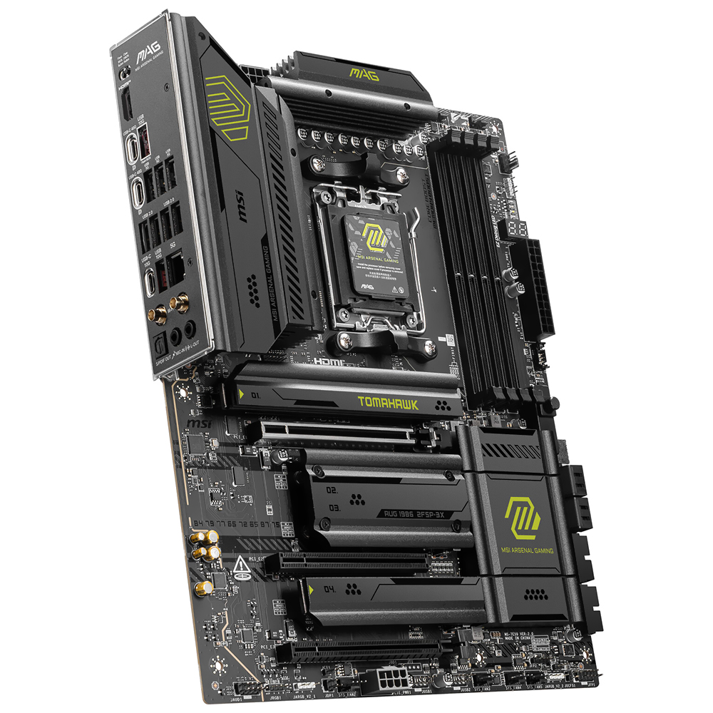 A MSI MAG X870E Tomahawk Wi-Fi é uma placa-mãe ATX criada para quem busca rendimento extremo, estabilidade impecável e conectividade de última geração. Seu design robusto, com acabamentos premium, reflete a confiabilidade e o caráter competitivo que caracterizam a série MAG, tornando-a o núcleo perfeito para um PC de produtividade avançada. É capaz de suportar configurações exigentes com desempenho estável, conectividade avançada e um design que inspira confiança.