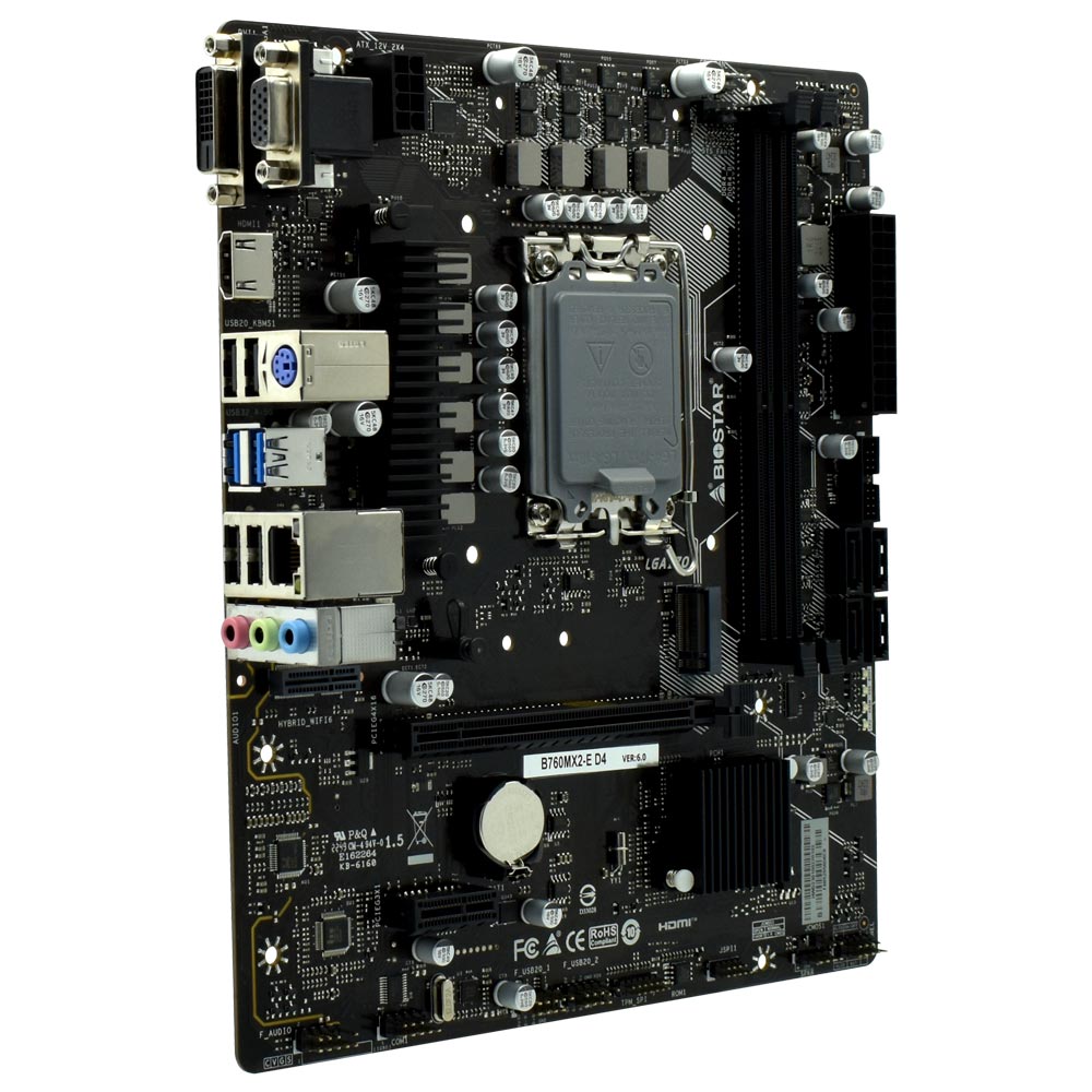 Projetada para um desempenho excepcional, a placa-mãe Biostar B760MX2-E D4 é compatível com os processadores Intel Core de 13ª e 12ª geração. Em seu painel traseiro, ela integra conectores essenciais, incluindo USB 3.2, USB 2.0, HDMI, VGA, DVI, Ethernet e áudio. Essa placa garante um desempenho ideal, assegurando uma experiência completa para o usuário.