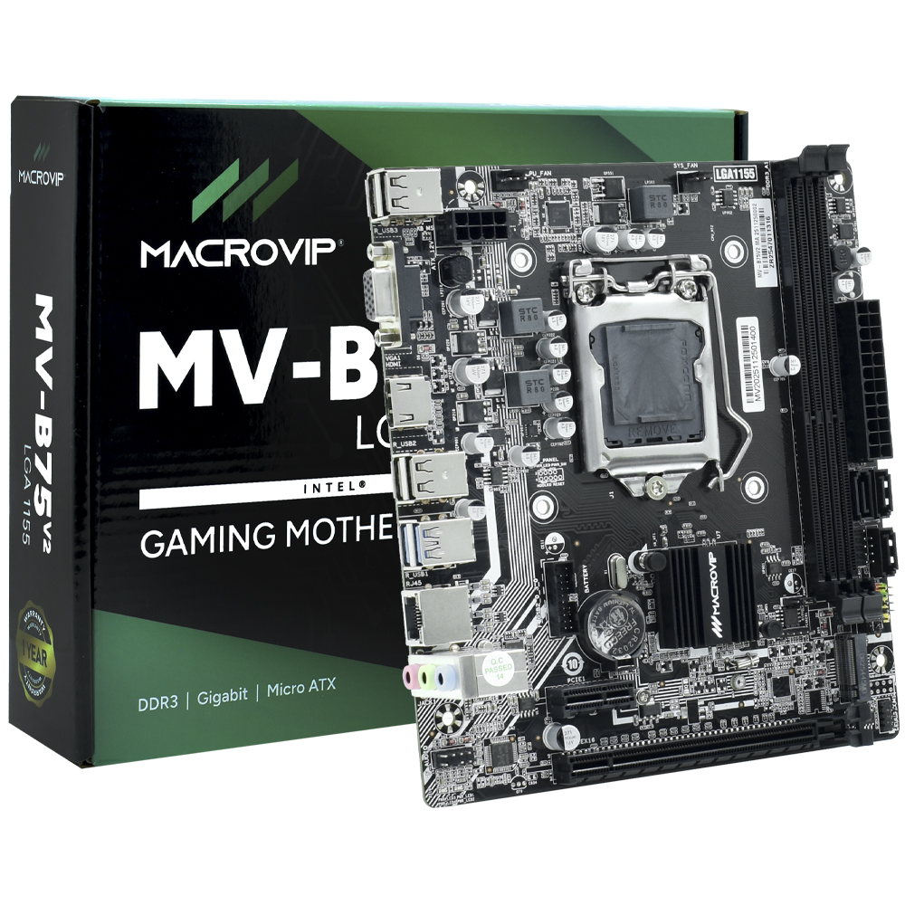 A Macrovip MV-B75V2 é uma placa mãe Micro ATX com chipset Intel B75 e soquete LGA 1155, projetada para oferecer estabilidade, compatibilidade e desempenho confiável em computadores de mesa. É compatível com processadores Intel Core i7, i5, i3, Pentium e Celeron de 2ª e 3ª geração, oferecendo suporte estável para multitarefa, escritório e uso diário exigente. Inclui saídas HDMI e VGA para máxima compatibilidade visual, armazenamento com suporte M.2 NVMe e SATA, além de 4 portas SATA.