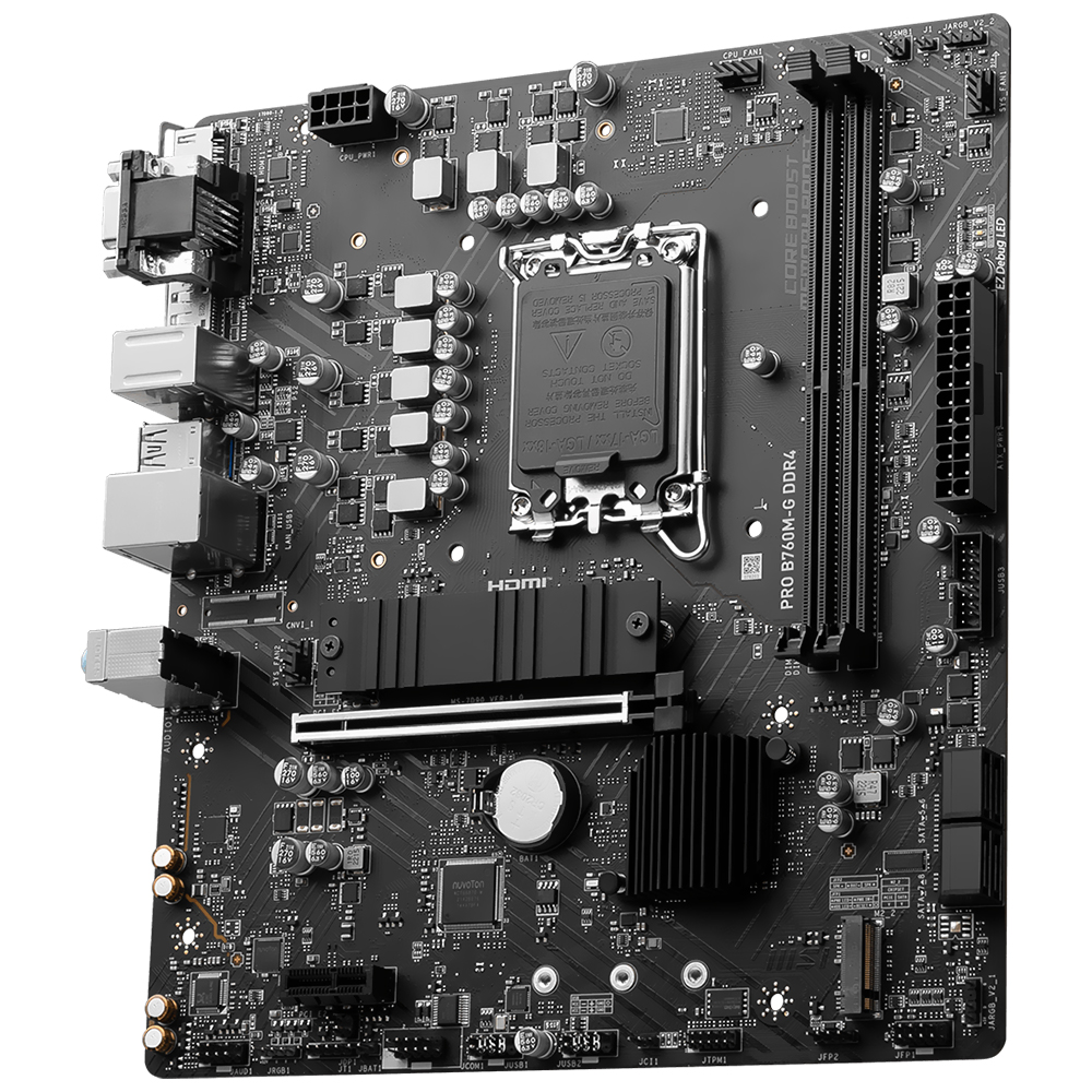 Descubra a base definitiva para transformar seu PC em uma máquina versátil e poderosa. Projetado para processadores Intel Core de 12ª a 14ª geração, o MSI Pro B760M-G oferece o desempenho de que você precisa para dominar tudo, desde sessões intensas de jogos até as tarefas multitarefas mais exigentes. Tudo isso é consolidado em um elegante formato Micro ATX que otimiza o espaço sem sacrificar a capacidade de expansão, ideal para configurações modernas e exigentes.