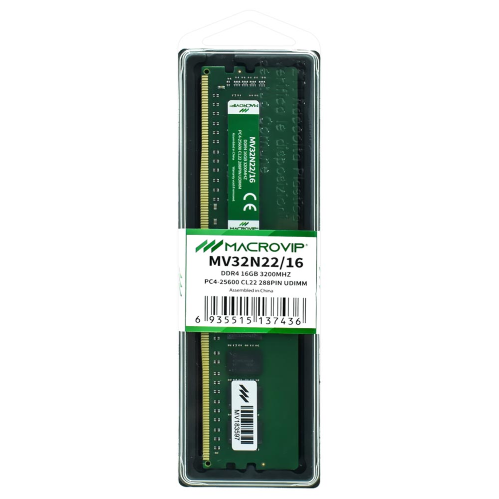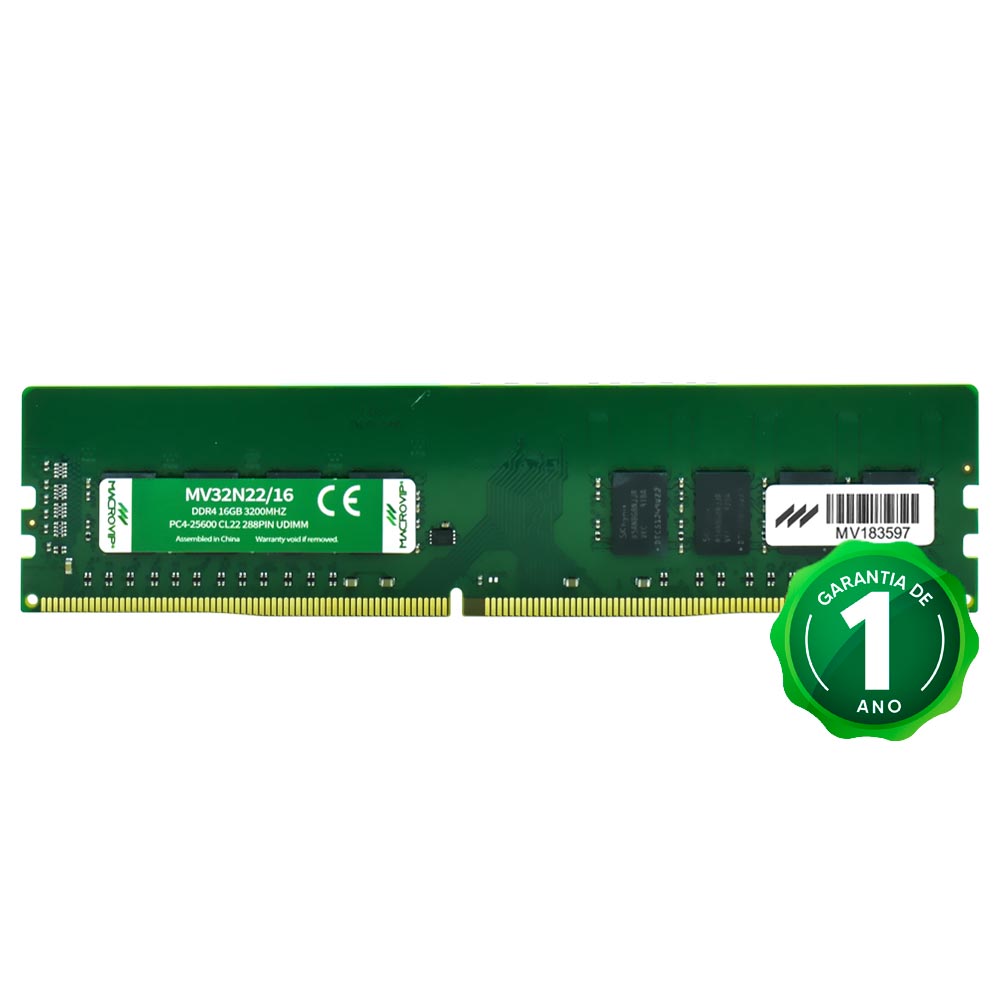 A memória da linha Macrovip oferece a qualidade, confiabilidade e o desempenho que seu PC precisa para uma melhor resposta geral do sistema. Capacidade de 16GB DDR4 e uma velocidade de 3200 MHz sem dúvida a execução será incrível. Tem uma ampla garantia de até um ano.