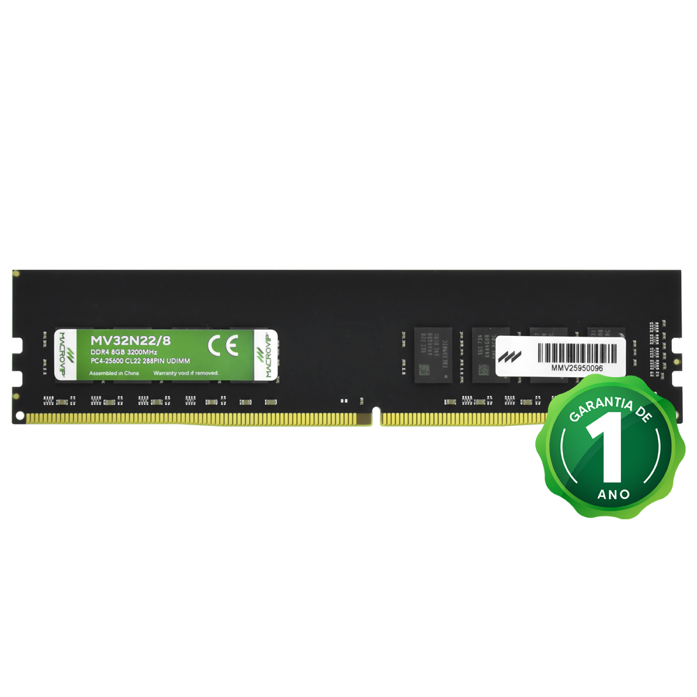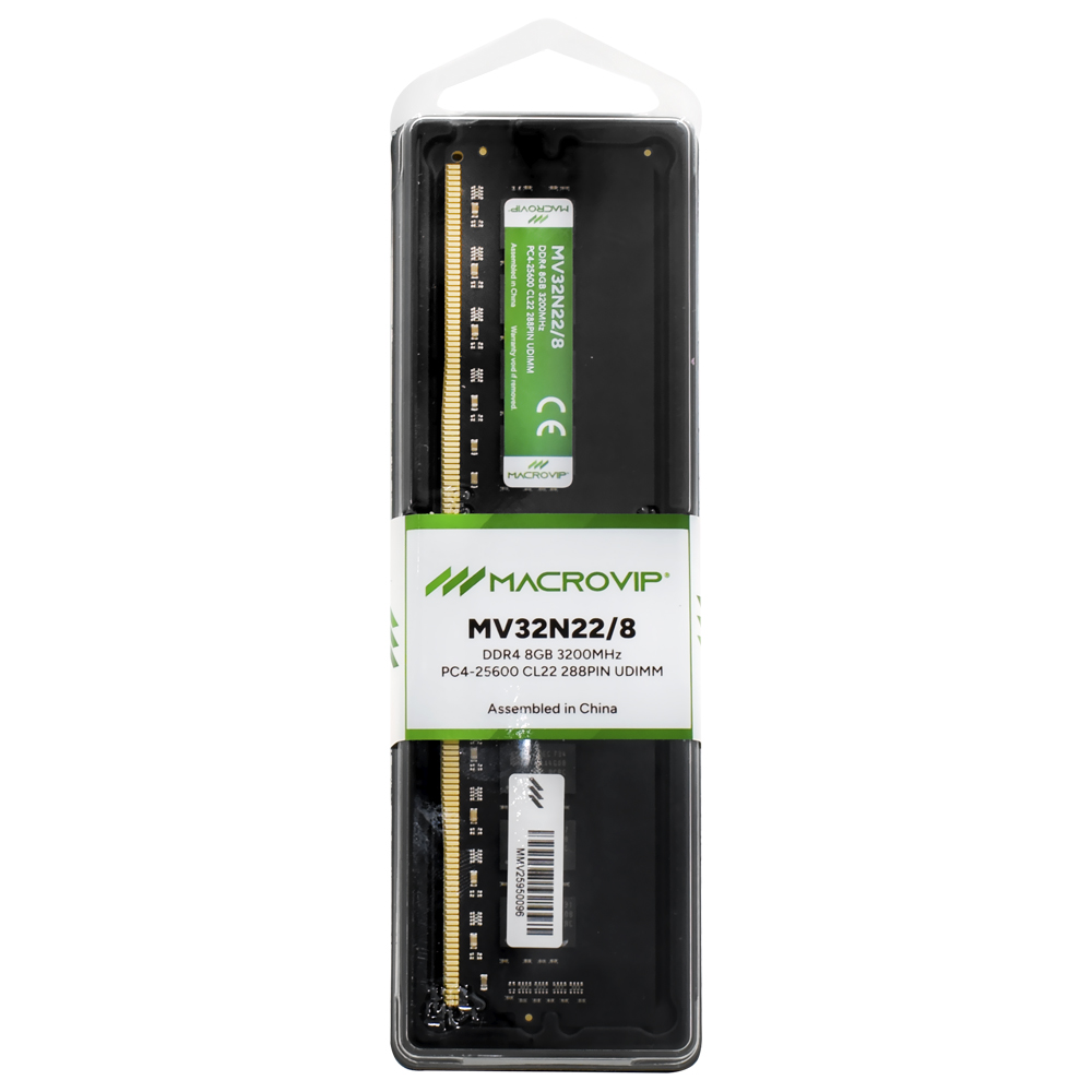 A memória Macrovip MV32N22/8 é uma RAM DDR4 de 8 GB com uma velocidade de 3200 MHz. Sua latência CL22 garante um bom equilíbrio entre desempenho e eficiência. Com uma voltagem de 1.2V, esta memória é ideal para atualizar PCs de desktop, proporcionando um desempenho ágil em tarefas cotidianas, navegação e aplicações de produtividade. O formato UDIMM a torna compatível com sistemas que exigem módulos de memória de alto desempenho, garantindo confiabilidade e estabilidade em cada uso.