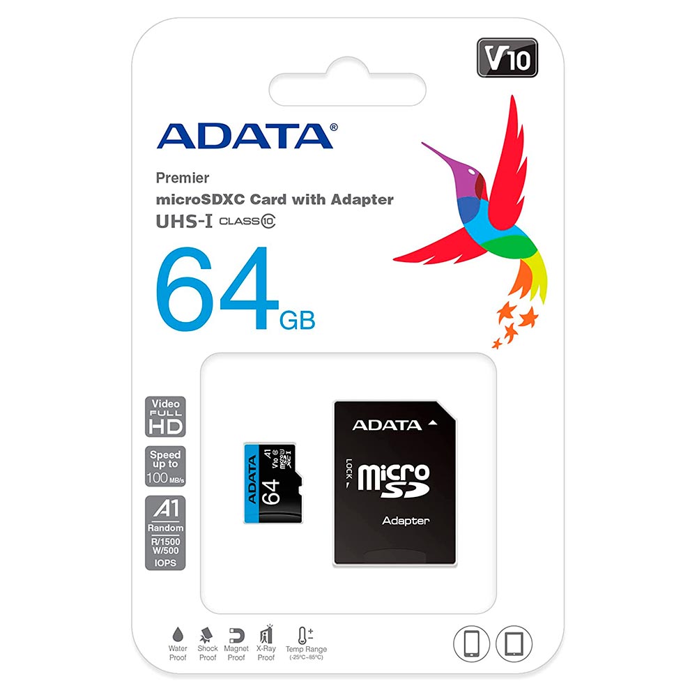 Cartão de Memória Micro SD ADATA V10 64GB Classe 10 - AUSDX64GUICL10A1-RA1 | ADATA | Visãovip Informática
