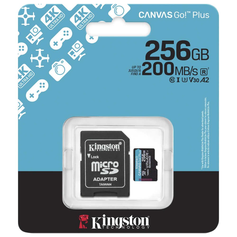 Cartão de Memória Micro SD Kingston Canvas Go Plus U3 C10 V30 A2 256GB - SDCG4/256GB