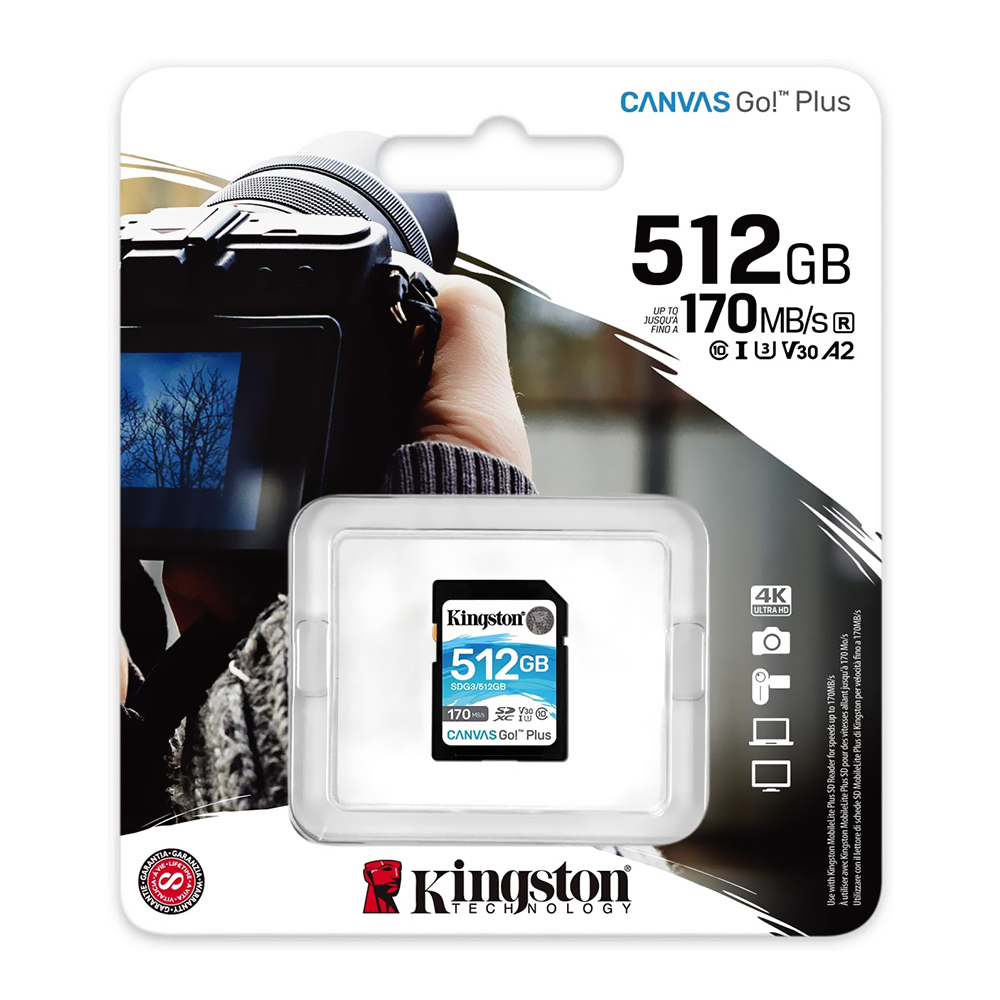 Capture suas aventuras da melhor forma possível com o cartão SD Canvas Go Plus da Kingston. Projetado para entusiastas de fotografia e aventura, esses cartões oferecem velocidades de transferência de até 170MB/s, agilizando os fluxos de trabalho e dando a você mais tempo para capturar sua criatividade. Com as velocidades U3 e V30, você pode gravar vídeos impressionantes em 4K Ultra-HD e capturar fotos de ação em rajadas contínuas sem se preocupar com a qualidade da imagem.