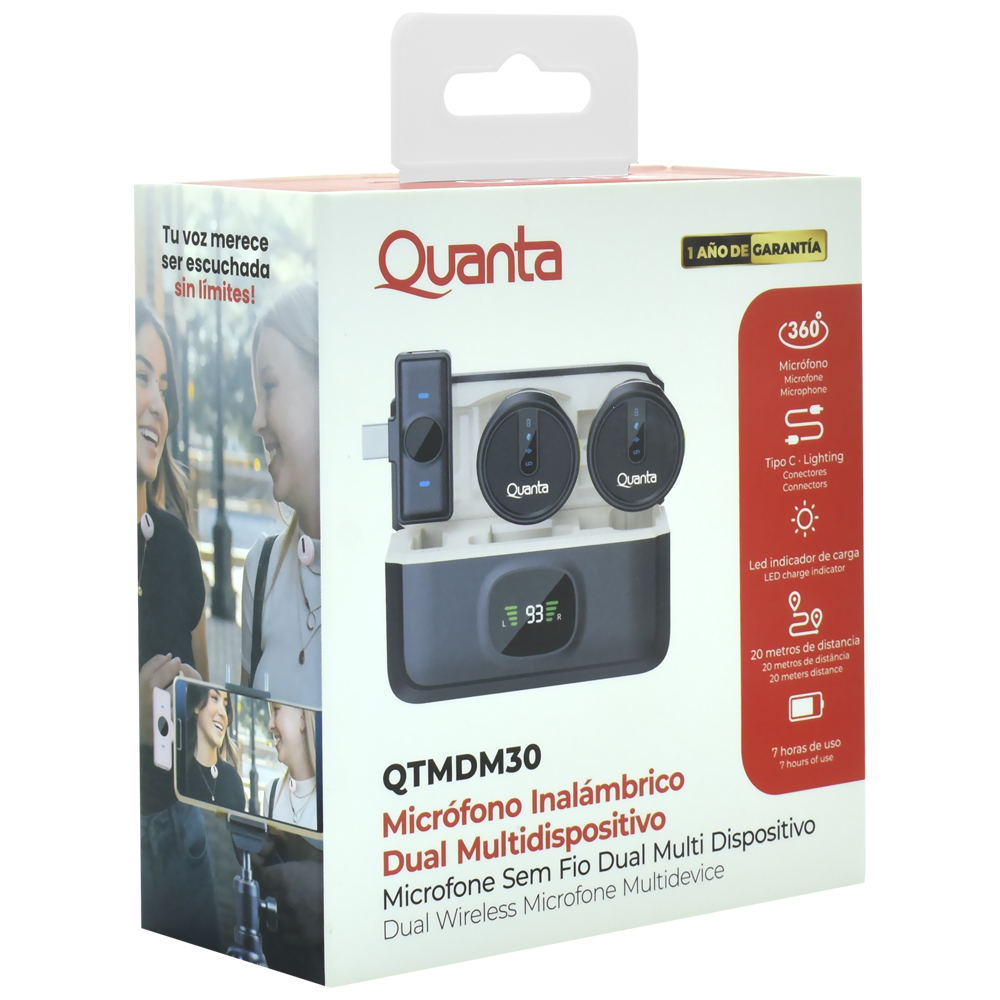 O impressionante Quanta QTMDM30 redefine a gravação inalámbrica com estrutura compacta e uma cor preto vibrante, ideal para profissionais criando conteúdos. O seu padrão omnidirecional assegura áudios limpos ante qualquer ângulo, enquanto a ligação sem fios garante mobilidade com um alcance de até 20 metros. Graças a bateria duradoura e cancelamento de ruído, este microfone adapta-se a diversas necessidades, fundindo estilo, tecnologia e desempenho numa ferramenta altamente moderna.