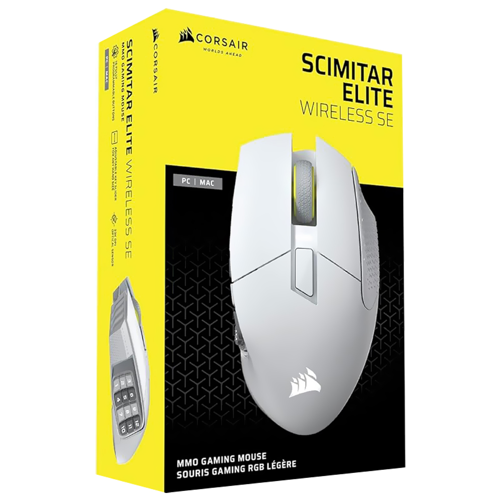 Mouse Gamer Corsair Scimitar Elite SE MMO Wireless - Branco (CH-9314011-WW) | CORSAIR | Visão Vip Informática