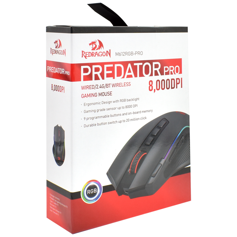 Mouse Gamer Redragon Predator Pro M612RGB-PRO RGB Wireless / Bluetooth - Preto | REDRAGON | Visãovip Informática