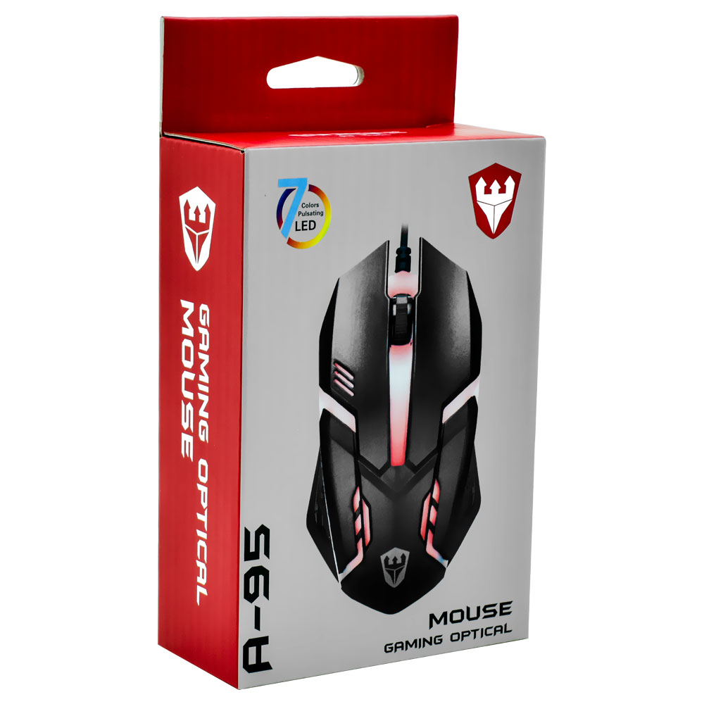 O mouse gamer Satellite A-95 apresenta um design confortável e moderno. Integrado com 3 botões, um sensor óptico que atinge um máximo de 1.000 dpi e uma conexão USB para fácil acesso.