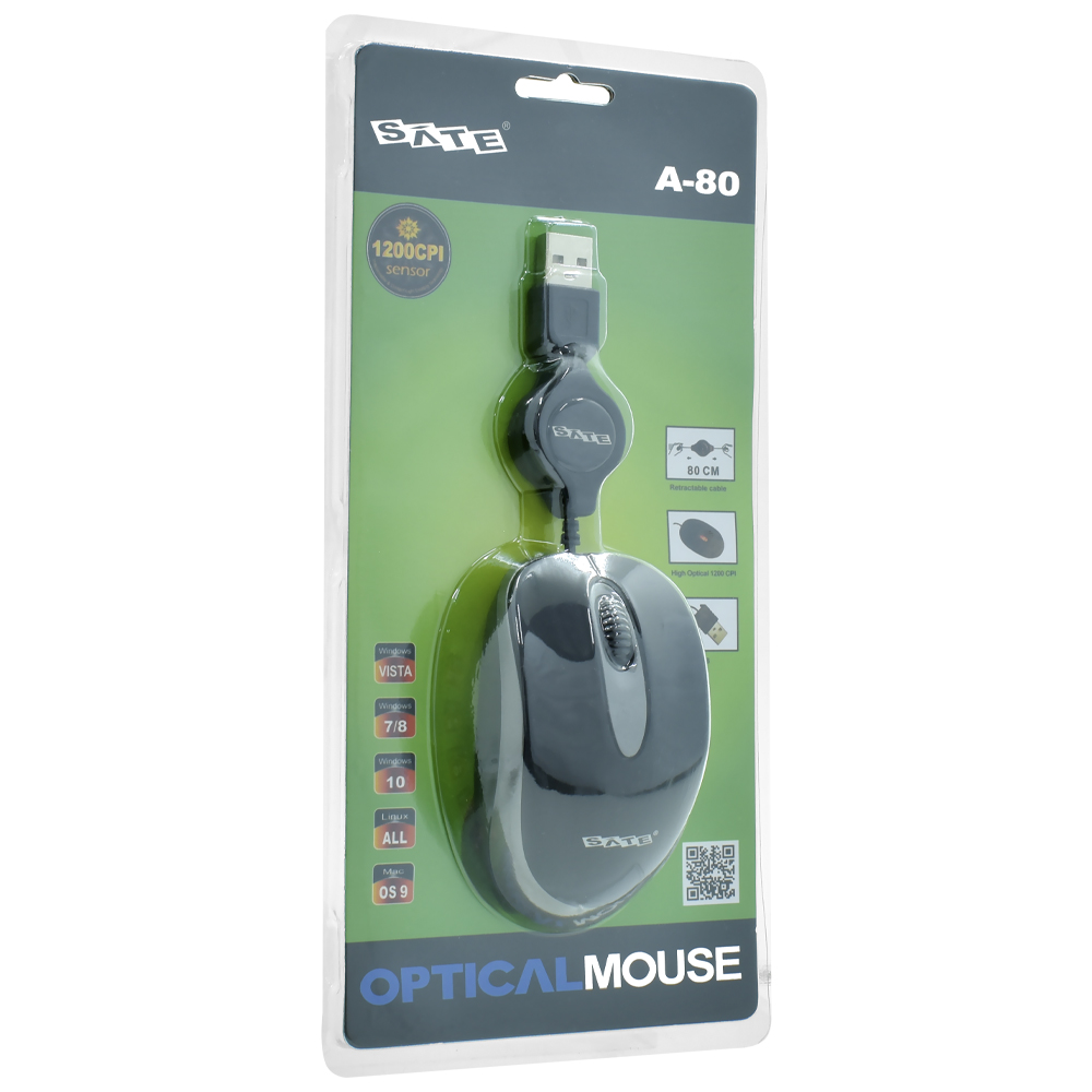 Com conexão USB, o mouse Satellite A-80 possui uma precisão bem melhorada, sensor óptico de 1200 dpi. Além de ser confortável mesmo depois de horas de uso, tem boa durabilidade e funciona na maioria das superfícies.